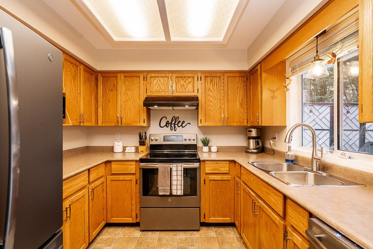 GREENBELT, VIEW, UPDATES THROUGHOUT. This charming, turn key home sits on a quiet cul-de-sac backing on to a greenbelt walking path with fantastic views. Oversized deck/balcony for entertaining, with Extra Parking for all your guests or toys. Incredible location walking distance to all levels of schools. 5 Bedrooms or 4 Bedrooms and Rec room, this meticulously maintained property has privacy, comfort and convenience only 5 minutes to highway 1.