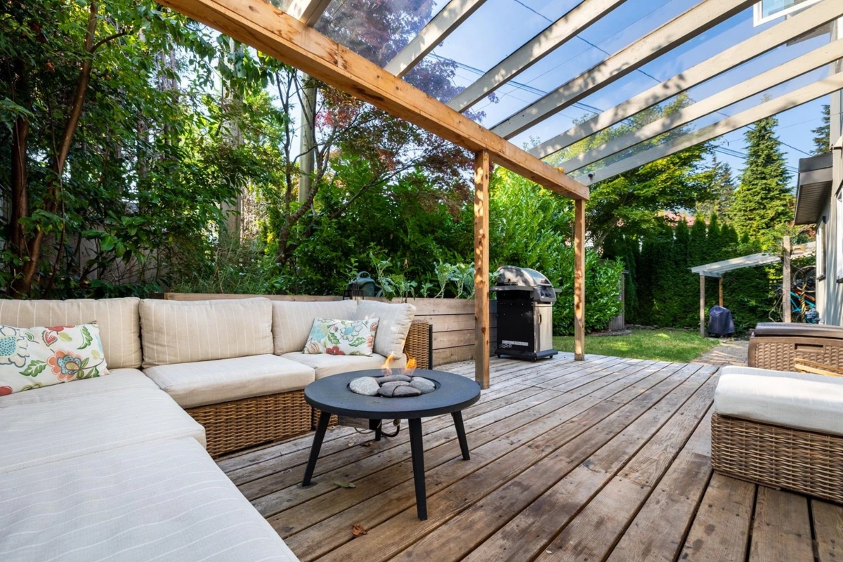 Are you a Growing Family or a Downsizer looking for Single Family Living at a Townhouse Budget? This timeless West Coast Modern 4-bed home delivers a smart, flexible layout and a private, sunny yard for kids, BBQs and happy hour. Tastefully updated throughout, the main floor offers open living/dining/kitchen plus a separate TV/play room that adapts to guest space or 4th bedroom. Upstairs hosts 3 comfortable bedrooms & a secluded deck of the primary for enjoying your morning coffee looking over the private grounds. Storage is abundant inside and out, with a detached workshop/shed. Two parking spots. Well-run Complex & Community. Prime Edgemont location: stroll to the Village, great schools, transit & trails. No Better North Shore Lifestyle -- A truly special home.