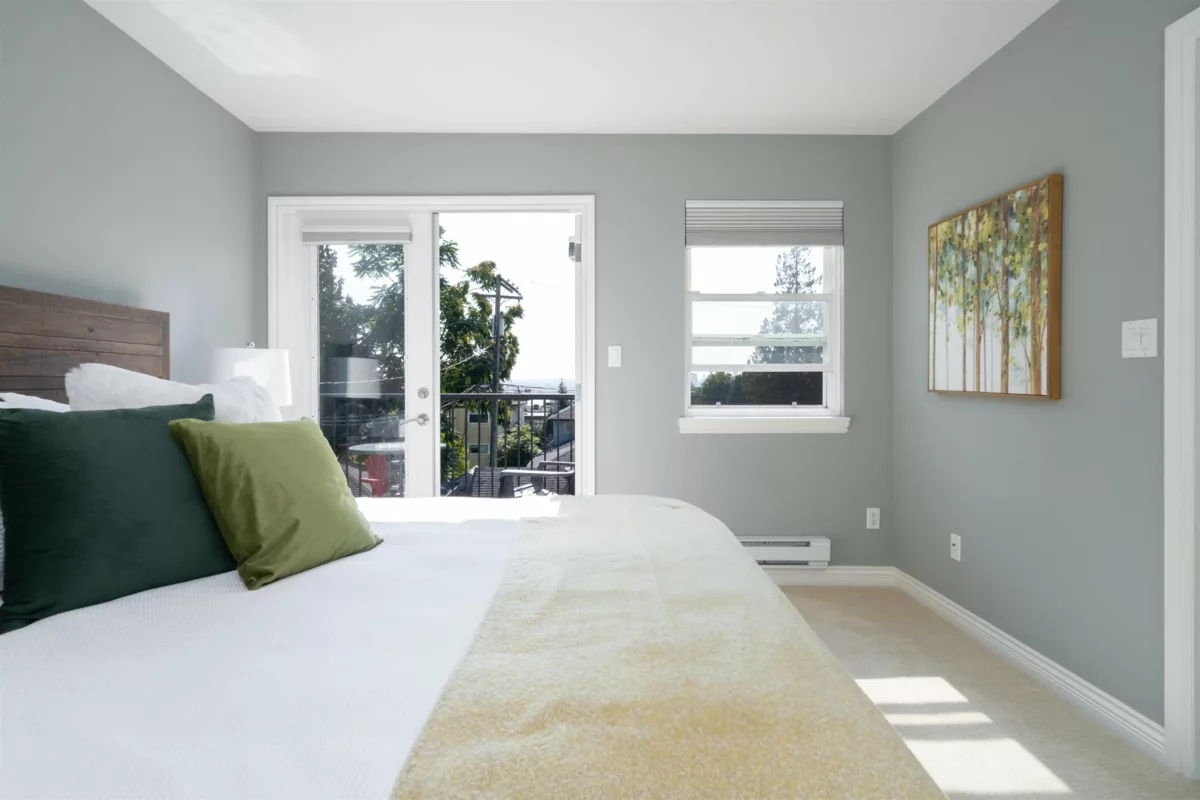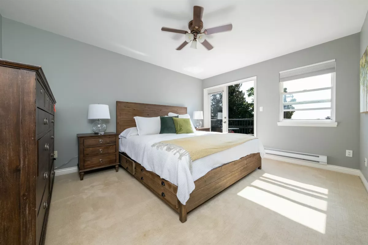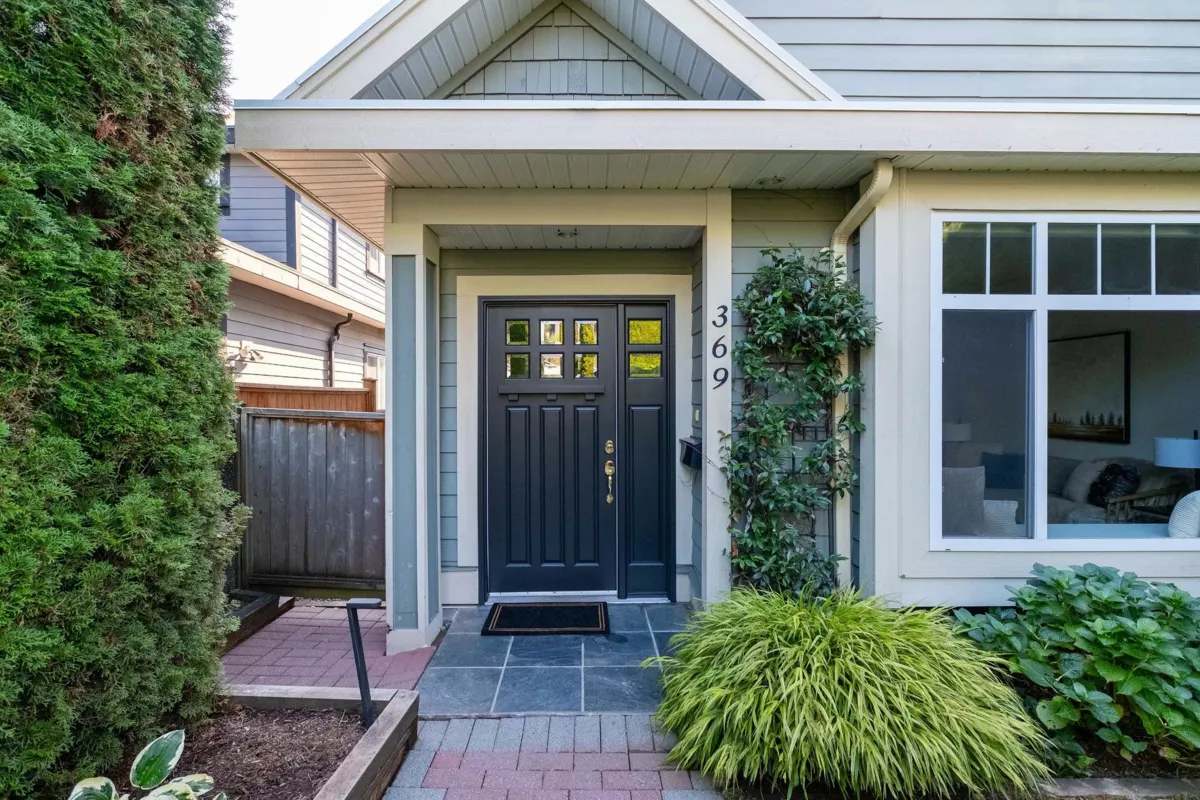 Sunny and south-facing, this half-duplex lives like a detached home with 3 bedrooms + den, 3.5 baths, and over 2,200 sq ft of space. The main floor offers a bright living room with window seating, dining area, and a family-friendly kitchen with quartz counters, wood cabinetry, and island. Step outside to a private deck and fenced backyard. Upstairs features a spacious primary with walk-in closet, ensuite, and balcony plus two additional bedrooms. The lower level adds a large rec room, den/home office, and full bath with direct garden access. A detached garage and carport provides parking for 2 cars plus secure storage. Ideally located on a quiet street near schools, parks, trails, shops, dining, and the SeaBus.
