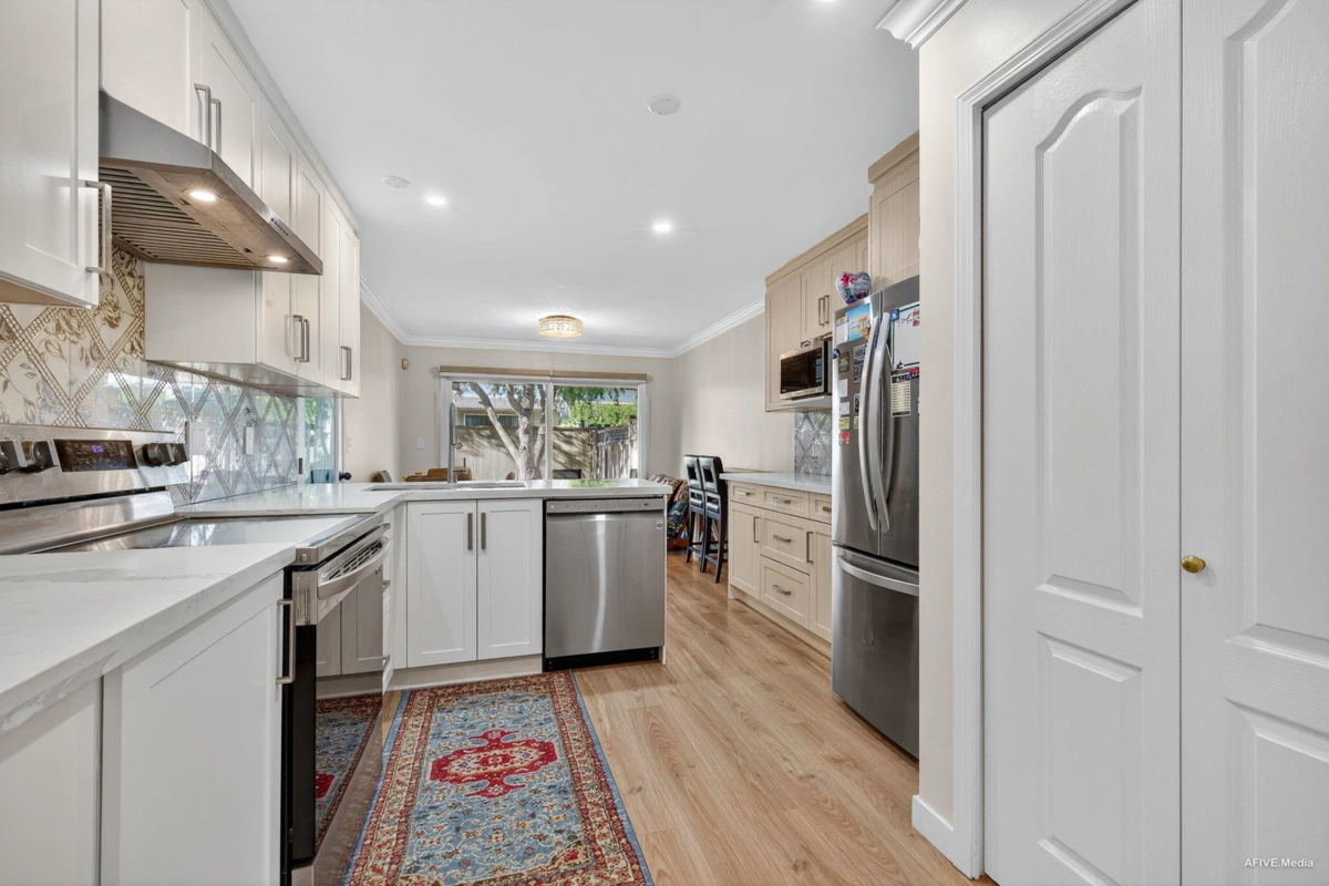 East Facing, Nicely renovated two level townhome which feels spacious like a house with large living room and huge kitchen. This gorgeous and well maintained townhome has had some MAJOR renovations. The kitchen has been completely re-done and is now an upscale chef's kitchen. All quarts counter tops, newer bathrooms, new pot lights, new switches and new door handles. There are 4 bedrooms on top floor which is rare for a townhouse. Side by side laundry with laundry folding shelf. Crawl space for extra storage. Located close to transit and shopping complex. Beautiful and spacious home with private large fenced backyard. Lots of street parking on the side road.