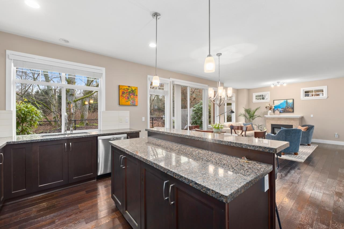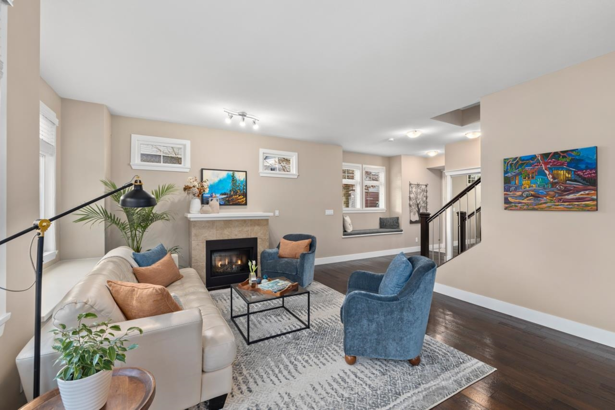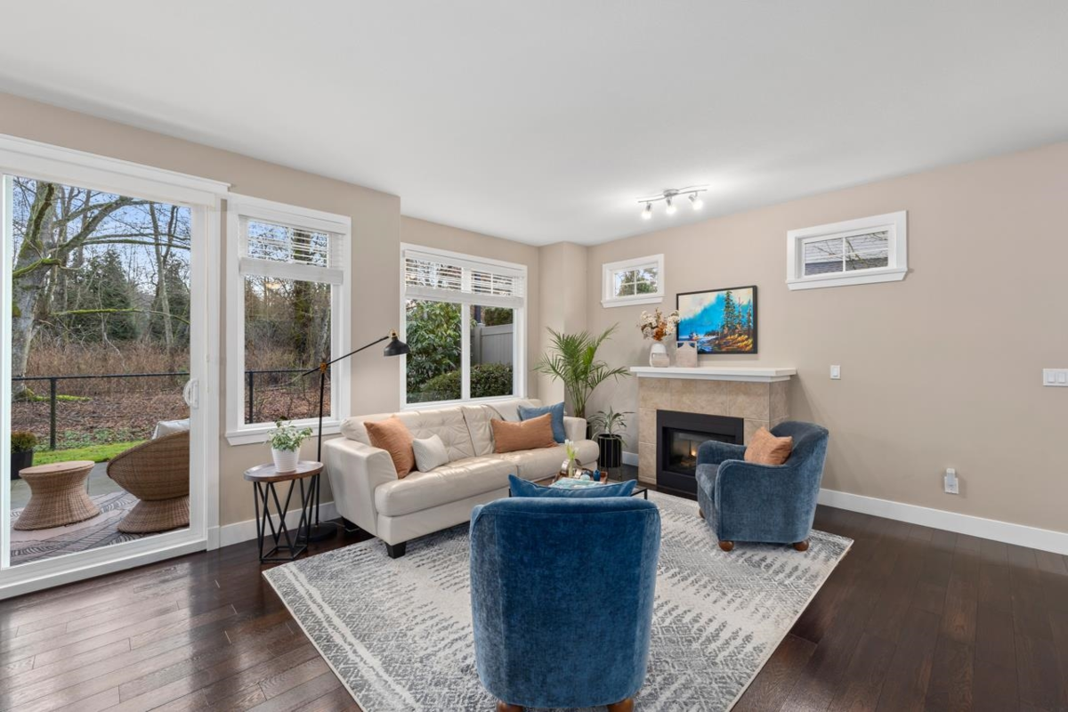 Beautiful FULLY DETACHED townhome in the boutique Nuvo complex,backing onto a private south-facing greenbelt w/a fully fenced backyard & private patio.The main floor features an open-concept living space w/a gas fireplace, large south facing windows to the patio & an entertainer's kitchen w/stone countertops,ss appliances.A versatile flex room on the main level works as a bedroom or home office & offers a separate entrance next to a full 3 pc bathroom. In-floor radiant heating throughout the main floor adds comfort. Upstairs offers 3 spacious bedrooms plus a flex space ideal for a sitting area or study.The generous primary bedroom retreat looks out at the greenbelt, large w/in closet & spa like ensuite.Located steps from Morgan Creek Golf Course,Grandview shopping,schools & Hwy 99 access.