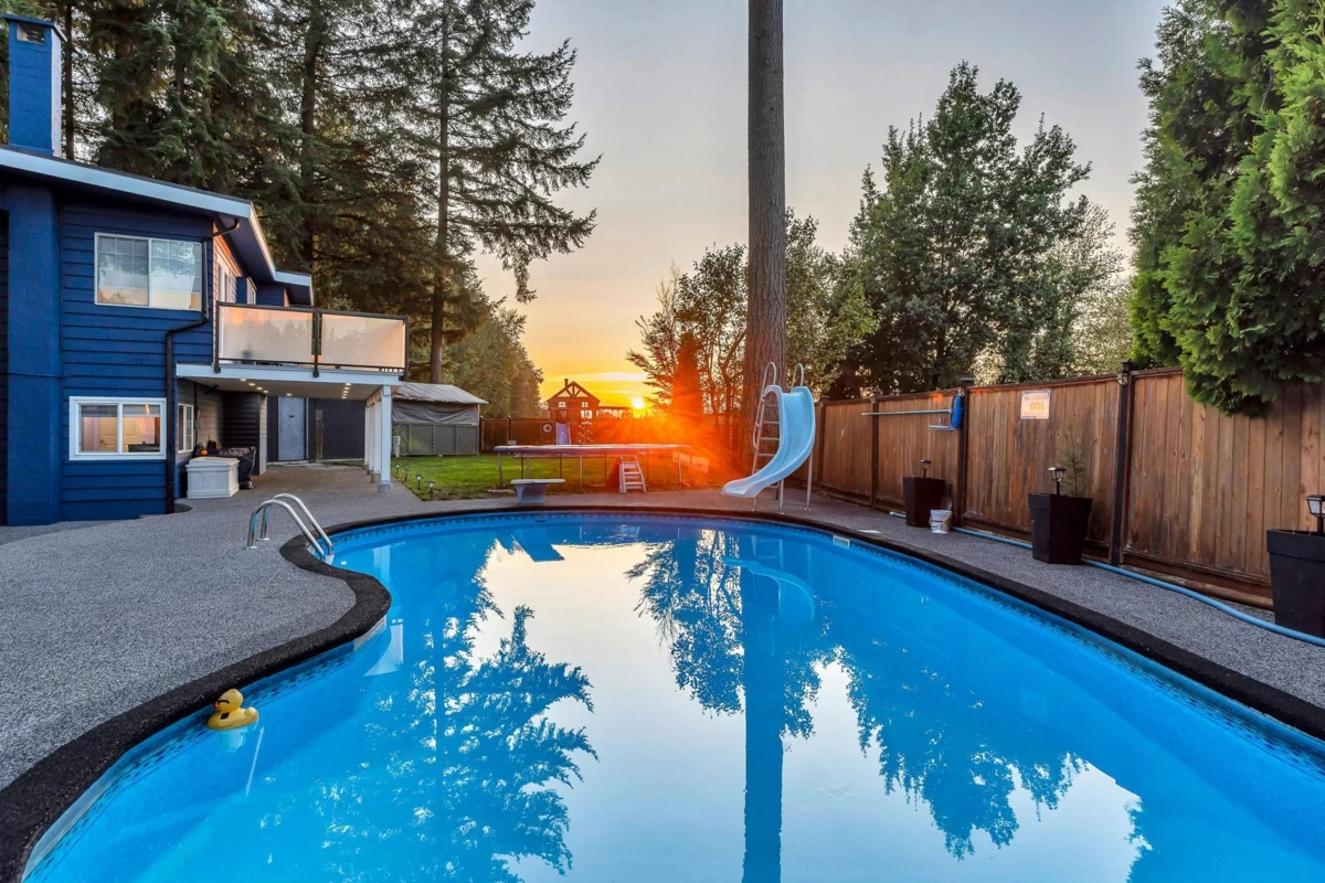 Brookswood beauty on a quiet cul-d-sac, a perfect family home; great for multi-generational living and excellent for hosting family events & parties. This home features 5 bedrooms plus a 2 bedroom suite, an attached double garage PLUS a detached (fully powered) double garage, a playground, inground pool, rubberized patio around pool, decks ...and all on ¼ acre parcel. Inside is a spacious kitchen with newer appliances. The secret playroom in one of the bedrooms is a hit with kids and a sneaky tucked away little bedroom for that sleep over guest is a fun bonus. The suite has a private entrance with a large balcony that gets absolutely the best sunsets ever seen.