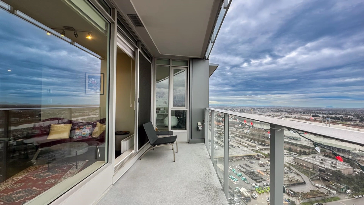 Location! Location! A golden opportunity to own this sub-penthouse unit with 360 degree of panoramic views of Fraser River, Richmond, West side Vancouver and East side of Vancouver up to Burnaby. It offers 1122 sqft living area with 2 bedrooms, 3 view roof decks. Centrally & conveniently located with Canada Line station, T & T supermarket, Cineplex and eateries.