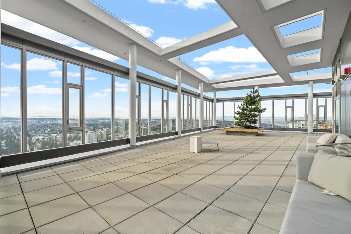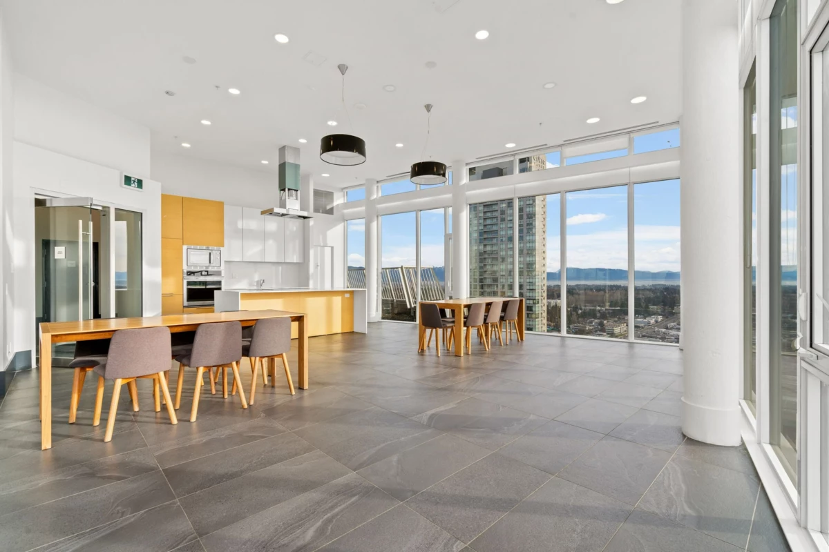 Experience luxury living in this stunning 3-bedroom, 2-bathroom penthouse at Prime on the Plaza. Featuring soaring ceilings and floor-to ceiling windows, this home offers breathtaking panoramic views of the city and beyond. The bright, open layout is complemented by high-end finishes and air conditioning for year-round comfort. The gourmet kitchen, and elegant bathrooms are meticulously maintained, showcasing exceptional attention to detail. Enjoy the convenience of two parking stalls and a storage locker. Located in the heart of Surrey City Centre, steps from shopping, dining, SkyTrain, and SFU, this penthouse blends modern elegance with unbeatable convenience.