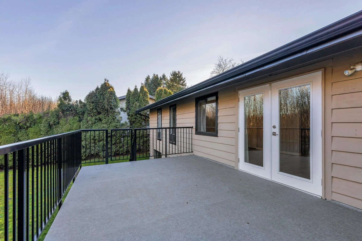 A desirable rancher with basement in Central Abbotsford. You can't beat this location! A flat private lot backing onto treed ALR land and located on a quiet cul-de-sac. Homes don't often come available on this street! The main floor features two bedrooms, a cozy living room with fireplace and a spacious family room leading to a large sundeck to enjoy nature out your back door. The primary bedroom is spacious with a walk-in closet and 2pc ensuite. Downstairs is highlighted by a massive rec room offering many possibilities, two more bedrooms with large windows and a laundry room with adjacent storage room. The basement has a separate private access. Upgrades to this well cared for home include - newer roof, upgraded furnace, hot water on demand and air conditioning.
