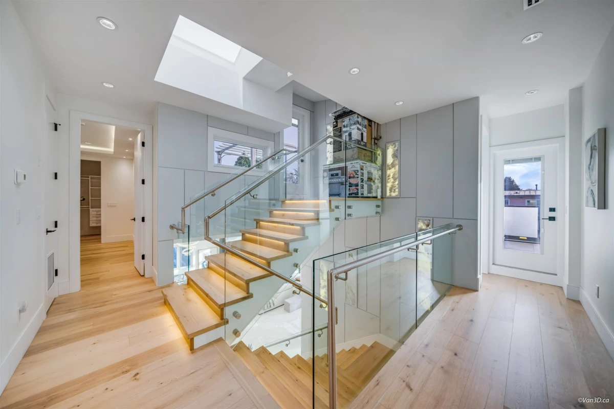 Welcome to the exquisitely crafted home, highlighted elegant Palladian windows that fill the space with natural light. The well-designed, spacious layout offers generously sized rooms throughout. The upper level features 5 bedrooms while the main level includes a convenient study or home office - ideal for today's lifestyle. Enjoy abundant natural light and fresh air from three balconies. Side-by-side garage facing a quiet inner street adds comfort and privacy.One legal suite as mortgage helper, book today