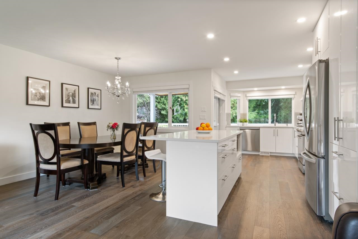 This charming rancher with basement home in Upper Lonsdale offers over 2,600 square feet across two levels, 5 bedrooms and 3 bathrooms. The main floor showcases an open-concept layout with a brand-new gourmet kitchen, 3 bedrooms, including a primary suite with an ensuite overlooking the backyard and engineered hardwood floors. The walkout lower level provides direct access to the backyard and includes 2 additional bedrooms, a spacious rec room, laundry, and potential for a suite. Nestled on a picturesque lot, the property also includes a one-car garage and ample storage, including space beneath the garage. Located within the Carisbrooke and Carson Graham school catchments. Welcome Home.