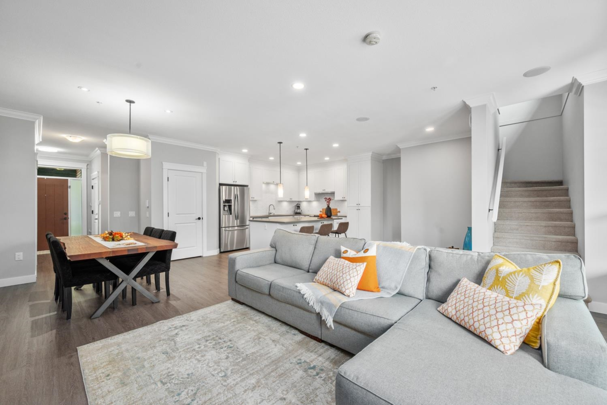 WELCOME to Magnolia GROVE-a sought-after family community in the heart of Albion! This spacious 2,005 sf 3-bed, 4-bath townhome offers thoughtful, open-concept design and plenty of room. The main floor features large windows,9'ceilings, a gourmet kitchen with quartz counters, oversized island, electric range, and a walk-out private patio - perfect for BBQ, morning coffee or evening beverage. Upstairs you will find 3 generous bedrooms, including a primary suite with spa-like ensuite, double sinks, and walk-in closet. The lower level offers a large rec room (or potential 4th bedroom), bath, and access to the private outdoor space. Enjoy quality finishes throughout and welcoming vibe. Magnolia Grove is a short walk to schools, parks, trails, transit, and shopping. Your new home awaits.