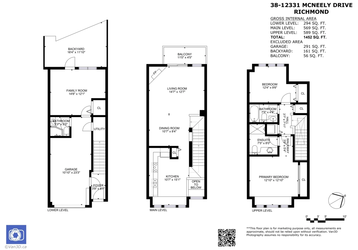 Sausalito by Polygon — a well-maintained, rainscreened, gated community. This bright and functional home offers 3 bedrooms and 3 full bathrooms with 1,452 sqft of living space. The main level features 9-foot ceilings, a cozy gas fireplace in the living room, and a sun-filled kitchen with bay window and eating area. Two good-sized bedrooms are located upstairs. The lower level includes one bedroom and a full bathroom with a separate entrance from the backyard, making it an ideal space for in-laws, a nanny, or extended family. Enjoy a highly walkable location—just steps to public transit, parks, library, Kathleen McNeely Elementary and Cambie Secondary School, with restaurants and shopping nearby. Move in ready home.