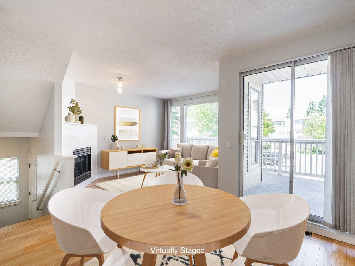 Welcome to “Malibu” by Polygon in the heart of California Pointe. This bright, well-kept corner townhome offers over 1,500 sq ft across three levels, featuring 4 bedrooms and 3 full bathrooms. The main and upper floors feel spacious and open, with 8'6 ceilings, engineered HW flooring, a skylit staircase, and a kit with granite countertops, SS appliances, and a cozy gas fireplace in LR. Natural light streams through the wraparound windows in the eating area/family room, and the large private balcony is perfect for morning coffee or evening unwinding. The primary suite includes a peaceful bay window seating area, perfect for reading and a walk-in closet. Lower-level bedroom with full bath offers flexibility—perfect for guest, visiting family, or a quiet workspace. Bonus S x S double garage.