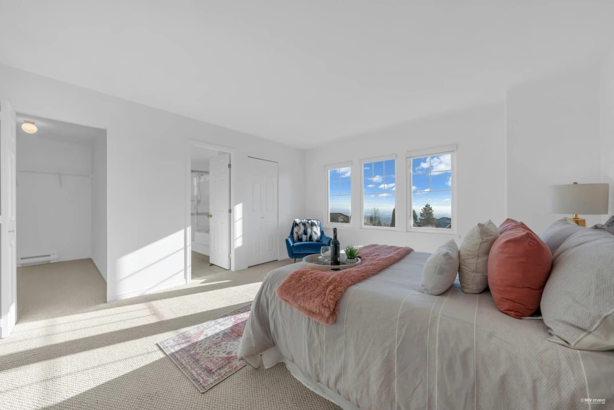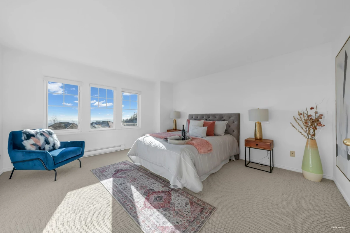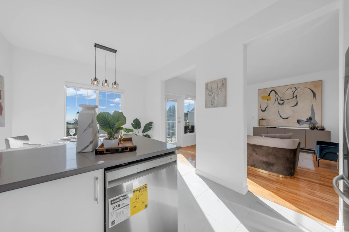 Elegant duplex-style 4-bedroom townhome in prestigious Westwood Plateau with sweeping views of Mount Baker and the city. Bright and spacious, this home offers large principal rooms, oversized windows, and excellent natural light. The fully renovated kitchen, new window coverings, and fresh designer paint create a refined, move-in-ready feel. Open living and dining areas feature a fireplace and access to a view balcony-ideal for entertaining or relaxing. Upstairs offers three spacious bedrooms and two baths, including a luxurious primary suite with mountain views, spa-inspired ensuite, and walk-in closet. Walk-out basement includes a rec room/fourth bedroom/full bath. Prime location near top schools, Coquitlam Centre, SkyTrain, and West Coast Express.