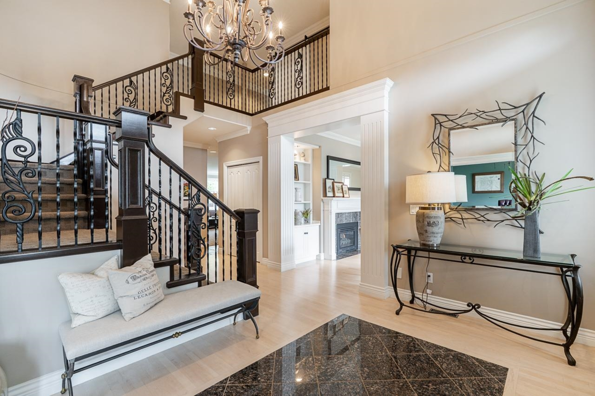 Nestled in the highly sought-after Government Rd area of N. Bby, this stunning luxury home blends timeless elegance w/modern upgrades. Built w/meticulous craftsmanship, it boasts attention to detail. Upstairs offers 4 spacious bedrms, including a primary bdrm w/spa-like ensuite & gas f/p - a perfect retreat. Expansive main flr w/formal dining rm, lovely living room w/ f/p, large den, chef-inspired kitchen w/large island & a family room w/access onto sundeck & private backyard patio. The bsmt impresses w/a media rm, 2 additional bedrms, a Rec rm, & a hobby space w/separate entrance, perfect for guests or in-law suite. Highlights include a double staircase on main, triple attached garage, RV parking, & A/C. Located in a quiet cul de sac location near all Bby amenities. SEE VIDEO !
