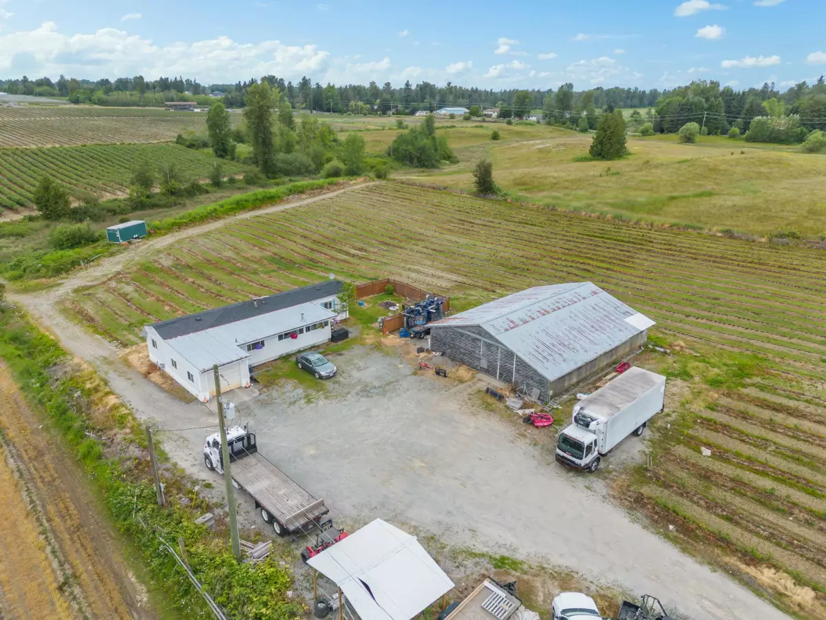 10 Acres with 2 homes and shop! CURRENT RENT $3910 + POTENTIAL TO RENT HOME & ROOM FOR TRUCKS! City water & drilled well with 3 phase power at the road. Main home features 3 bed, 2 bath 2244 sq/ft rancher w/ basement. 1,434 sq/ft mobile home. GREAT LOCATION for dream home 341.5 FT wide parcel. 55x44 shop and 25x19 detached garage. Blueberries! Front portion replanted with Duke & back portion is Eliot variety. Farm yourself? Lease? Replant? Convert for your use? Easy access to HWY 1, Fraser HWY, 16 Ave, Aldergrove and all amenities. GREAT LOCATION TO BUILD YOUR DREAM HOME WITH VIEWS!