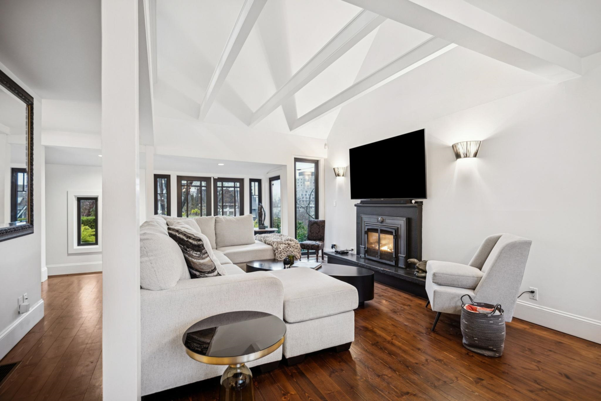 This architecturally stunning and very unique home surrounds a beautiful inner courtyard. Taken to the studs & rebuilt in 2017, the custom gourmet kitchen features premium KitchenAid appliances, extra deep Caesarstone counters, Frankie double sink & Hansgrohe faucet. The primary bedroom is a private, peaceful retreat, tucked into a separate wing with luxurious spa inspired ensuite + walk-in closet. Soaring cathedral ceilings, french doors, a statement fireplace, and richly toned knotty pine floors add warmth and character throughout. Office loft w/ north shore views steps out to the spacious rooftop deck. 3rd bedroom removed, easy to reconfigure back. 2017 roof & gutters, 2022 furnace. 5' high 600 sq ft crawl. Multiple updates. Close to Jericho, golf, shops.Open Sat/Sun Jan 24/25 2-4:00PM.