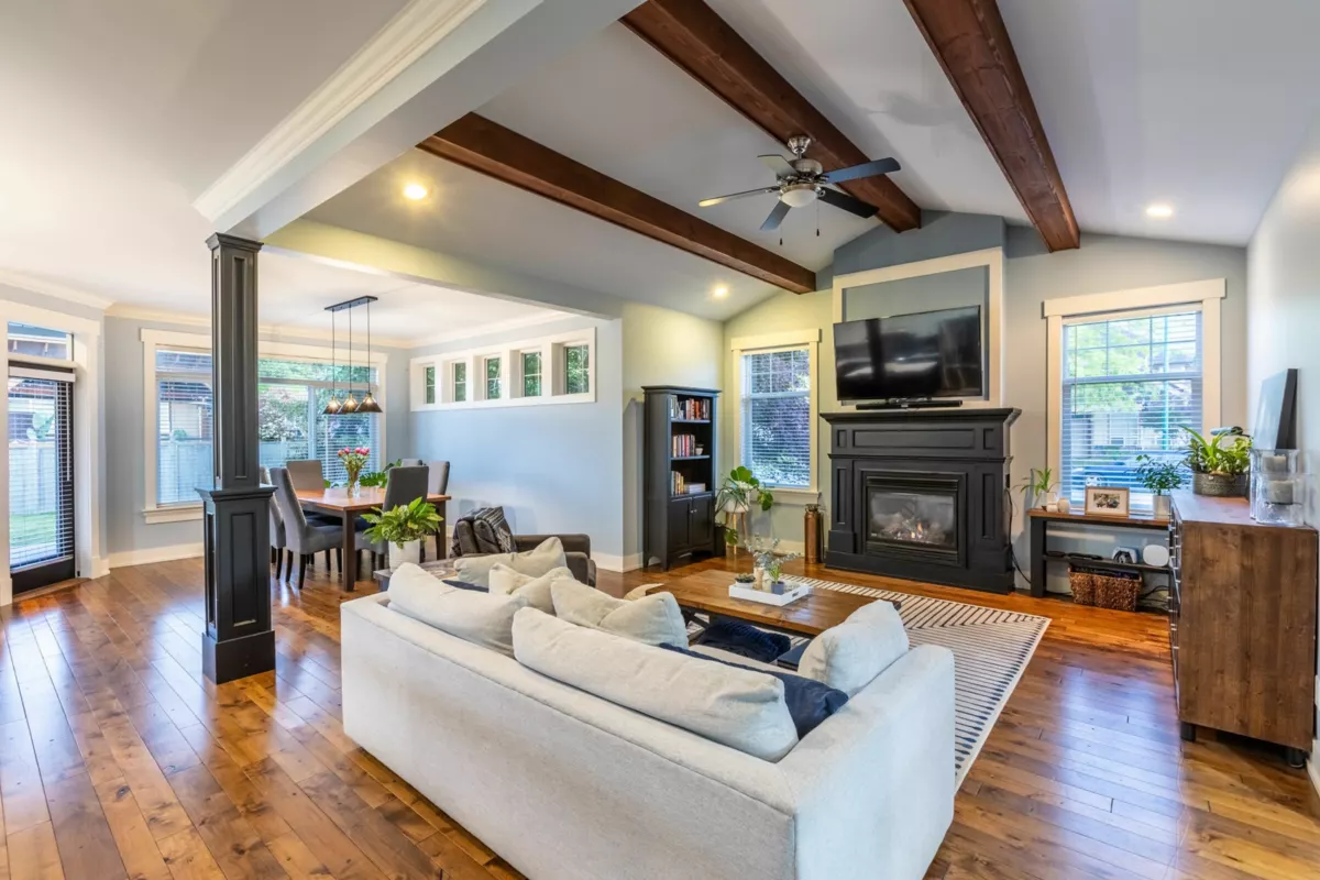 This is the one! Beautiful 6 bed rancher with walkout basement in the family friendly Sandy Hill neighbourhood. Huge windows soak the main floor with natural light plus 9’ ceilings, crown moulding, hardwood floors, & custom millwork. Open concept kitchen with new quartz counters, undermount sink, updated appliances & two-tone shaker cabinets. Vaulted family room with cozy gas fireplace & access to the patio. Primary bed with walk-in closet, 5-pc ensuite, soaker tub & patio access. Downstairs offers a 2-bed suite with separate entry, living room, laundry, kitchen & covered patio. Additional bedroom & rec room for upstairs use. New HWT, updated plumbing & A/C. RV parking, fenced yard + hot tub. Walk to Sandy Hill Elementary (French Immersion) Clayburn Middle & Robert Bateman Secondary.