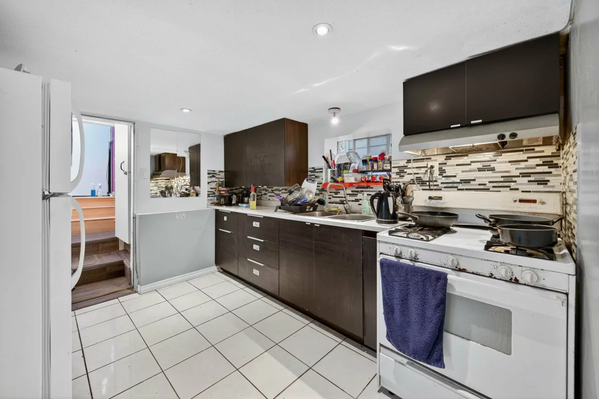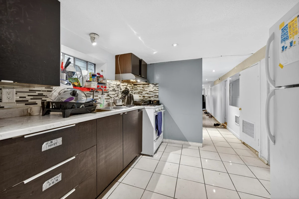 Conveniently located near Kingsway, surrounded by restaurants and shops. This well-maintained home features numerous updates, including a brand-new furnace and hot water tank. offering a spacious living room with 2 generous bedrooms and one cozy bedroom upstairs and 4 bedrooms, 1 office on the ground level with kitchen, living area, bathroom, and separate entrance — an excellent mortgage helper! Includes 3 carports at the rear and a large in-house storage room as a bonus. A must see!