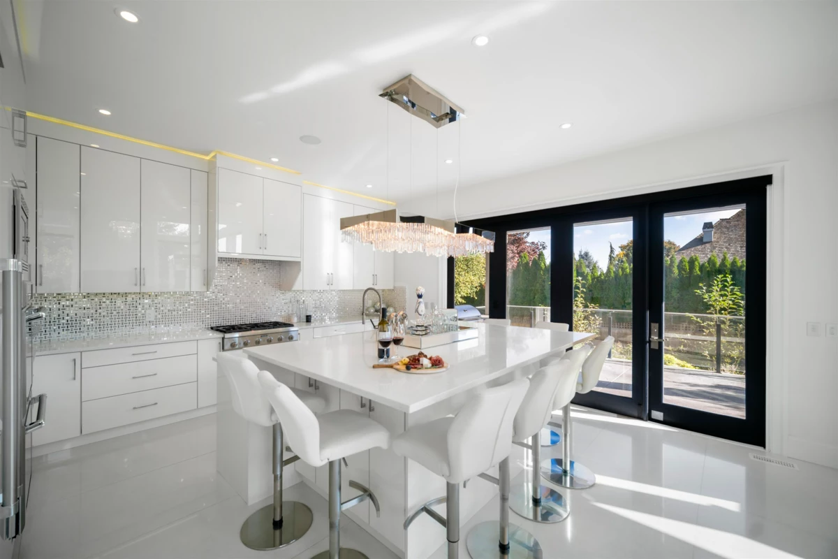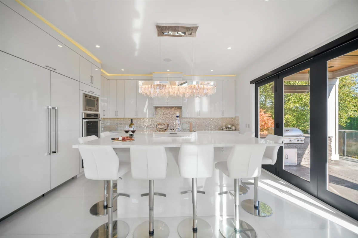 Custom built Morgan Creek residence exemplifying quality craftsmanship with glitz and glamour. 4,300sqft of luxurious living space complete walls of windows, stone slab floors, custom wallpaper, crystal chandeliers and modern design throughout. Grand double-height great room with ample natural light, chef's dream kitchen complete with Thermador appliances and accordion doors creating an indoor/outdoor entertainment space. 2 Primary Suites; one on the main floor and one above, with 2 additional guest bedrooms upstairs. Lower level is a 2 Bedroom/2 Bathroom Suite finished in the same quality as the main home with a spacious kitchen, living and dining room; perfect for extended family. Situated on a bright 10,000sqft property, Morgan Elementary and Grandview Heights Secondary catchment.