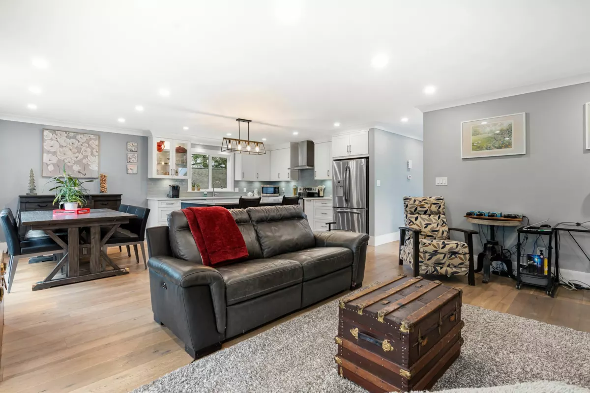 A rare freestanding home just one row from the Steveston oceanfront. Professionally renovated by local builder, this Mariner's Village residence blends coastal charm with modern design. Bright open living with rich hardwood floors to a stunning island kitchen with SS appliances. Main level offers 2 bedrooms, 2 full baths, providing comfortable, single-level living with access to a generous balcony. Fully fenced front and back yards provide peace of mind for kids and pets, featuring artificial turf and storage sheds. Lower level includes a 1 bedroom quest/in-law suite with kitchen and rec room. Proactive strata with exterior and window upgrades complete. Enjoy resort-style amenities: clubhouse, indoor pool, hot tub and sauna. Steps to Garry Point, Steveston Village, Shops and top Schools.