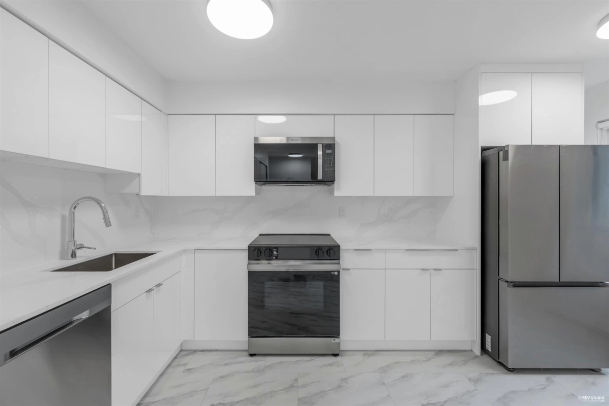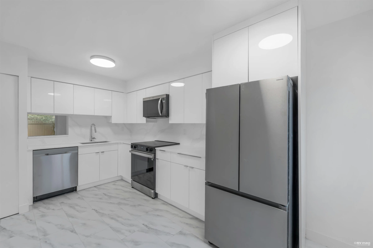 Newly renovated,welcome to your move in-ready 3 BR unit-that's just mins away from schools, parks & shopping.Enjoy the BRAND NEW updates including:soft-close glossy white kitchen & bathroom cabinetry, quartz countertops, stainless steel appliances (fridge,oven,3-rack dishwasher,microwave range hood,washer& dryer),designer paint,custom roller blinds, linear heaters,modern lighting,luxury vinyl tiles & mimalist styled baseboards.The bedrooms are bright, spacious & inviting.Organize away-all the closets are equipped w/ brand new ample shelving & racks.The spa-inspired bathrooms have BRAND NEW luxurious porcelain tiles,polished Pfister faucets,Broan exhausts, for the master, a tub & a Moen shower head & spray. Relax in your privately fenced backyard w/ beautiful greenery as a perfect backdrop.
