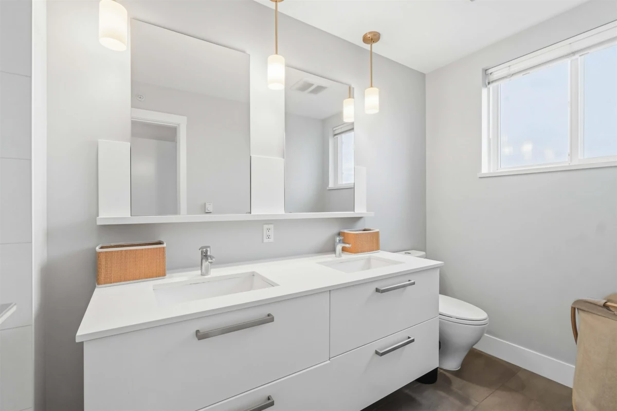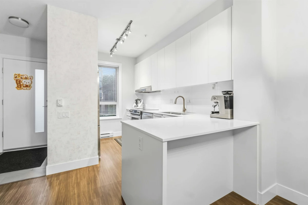 METRO by Mosaic Homes — a boutique rowhome collection in the heart of Metrotown offering the best & most unique floorplan in the complex. This meticulously maintained corner/end 3 Bed home shows like a designer showcase, featuring an open-concept main level w/ a chef-inspired kitchen, oversized island, upgraded appliances & quartz countertops, + generous living/dining space that flows to your private South-facing patio w/ premium landscaping & low-maintenance artificial turf. Upstairs, enjoy 3 spacious bedrooms, 2 full baths, highlighted by a serene primary retreat w/ custom cabinetry. This home is directly connected to 2 secure parking stalls w/ an additional flex/storage room for ultimate convenience. School catchment: Maywood School & Burnaby South Secondary. OH Sun Feb 8th 2:30-4:30pm