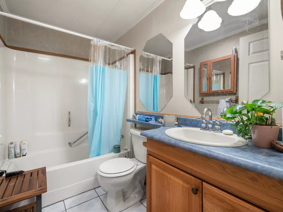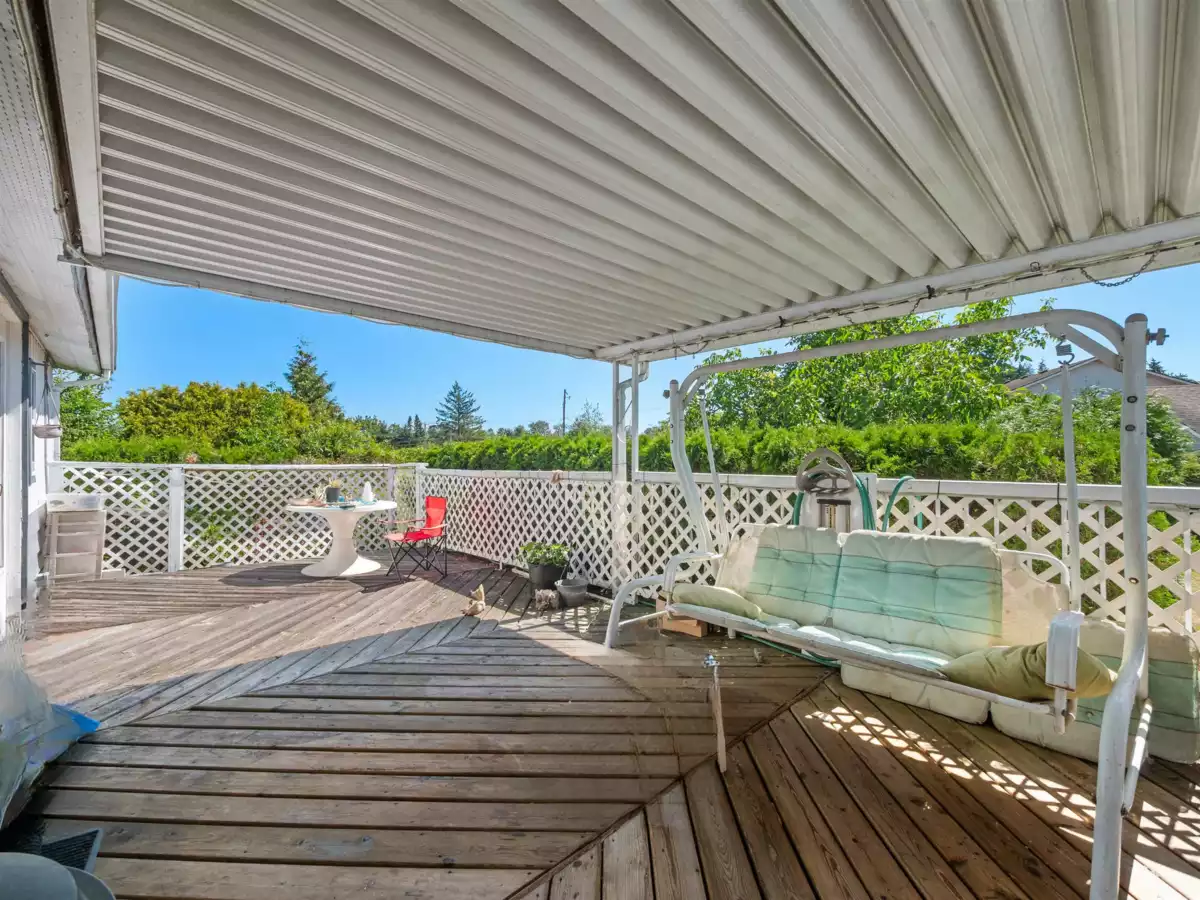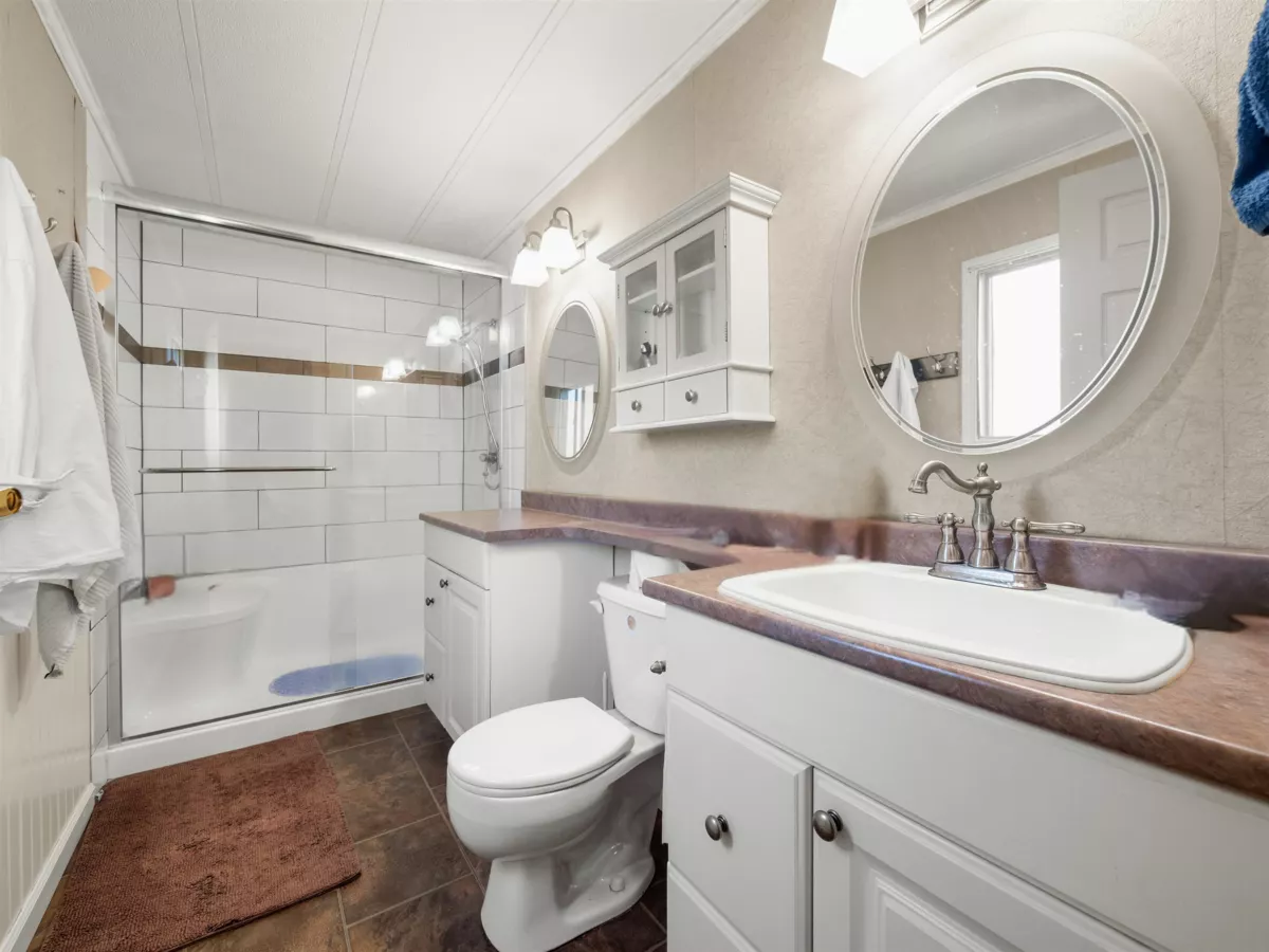 BEST LOCATION in Westwood Estates! This one feels like home. Enjoy a private yard with plenty of lawn and multiple decks, perfect for relaxing, gardening, or entertaining. This double wide home offers 2 bedrooms, 2 full bathrooms, and a separate dining area. The spacious primary bedroom includes a 3 piece ensuite and a generous walk in closet. Pad rent is just $911 and includes water, sewer, garbage, and land taxes. Located in the highly sought after 55 plus community of Westwood Estates, where large dogs are welcome with manager approval (no vicious breeds). A rare find for anyone who values outdoor living!