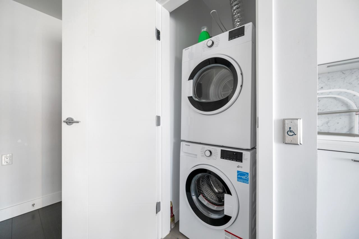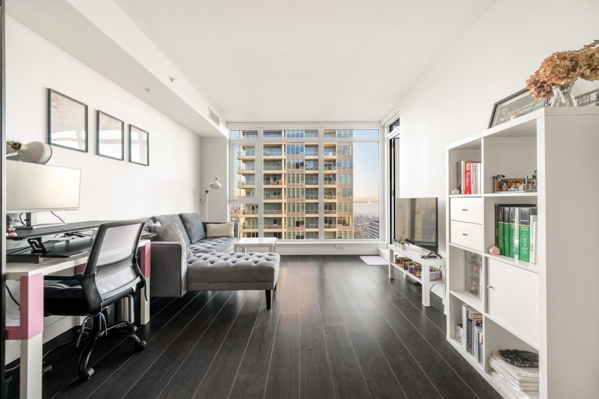 Luxurious Sun Towers by Belford Properties. This 1 bed, 1 bath southeast-facing Sub-Penthouse boasts a fully-equipped kitchen with highend appliances, gas cooktop, and quartz counters. Enjoy the comfort of A/C and bask in natural light and stunning city views through bright, expansive floor-to-ceiling windows. The the Massive 24,000 Sqft Solaris Clubhouse complete with a swimming pool, steam/sauna room, badminton court, golf simulator, exercise/party room, and concierge. directly across from Metrotown, you'll have access to ample shopping, restaurants, recreation, and entertainment options, as well as the Skytrain/Bus Station. within walking distance to Crystal Mall, library, Central Park, and Bonsor Community Centre — ideal for both investment and live. Open House Jan 24 &25 Sat & Sun 2-4