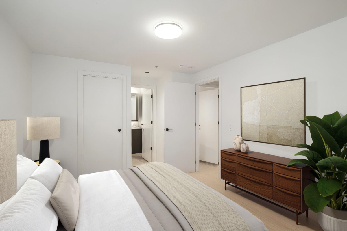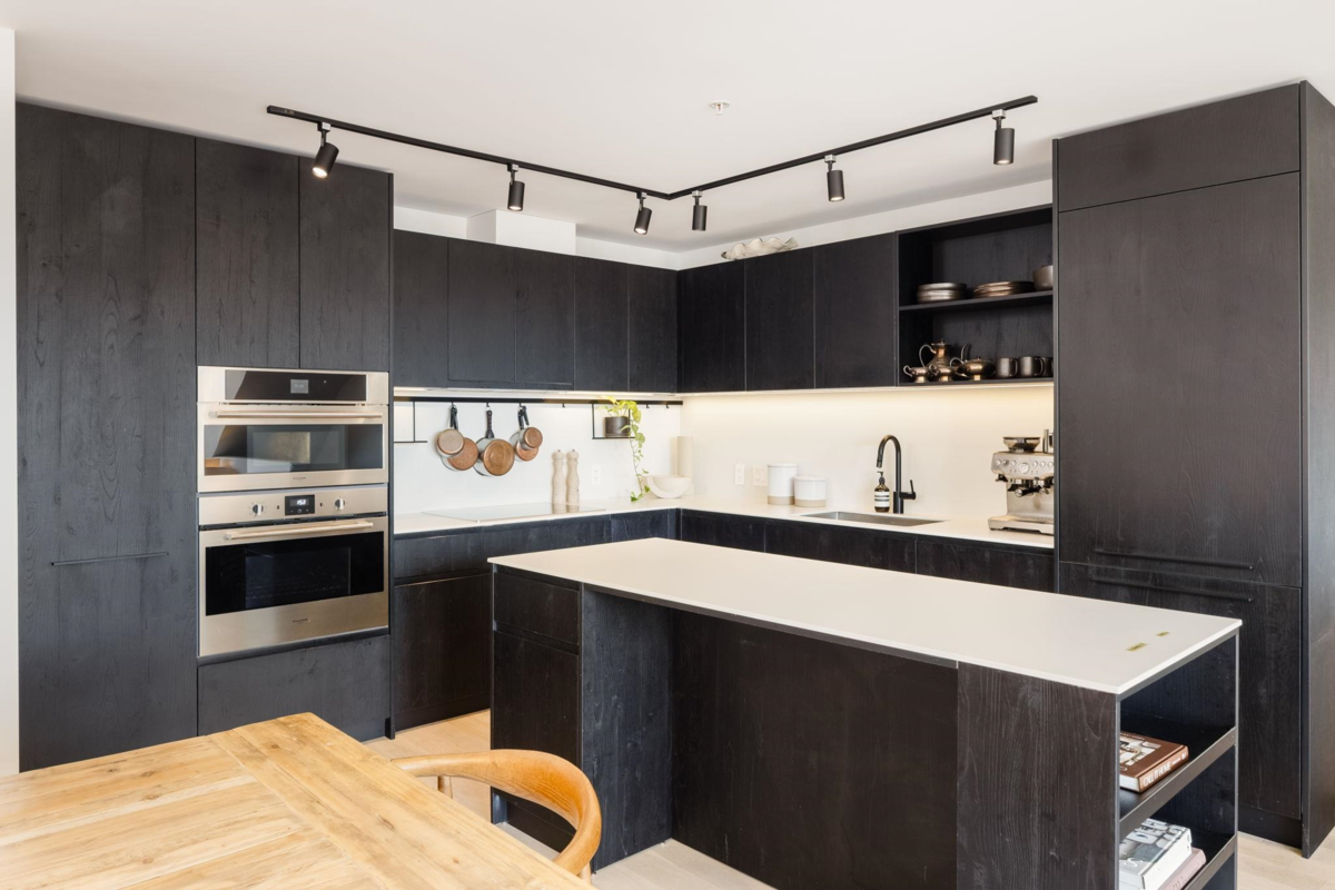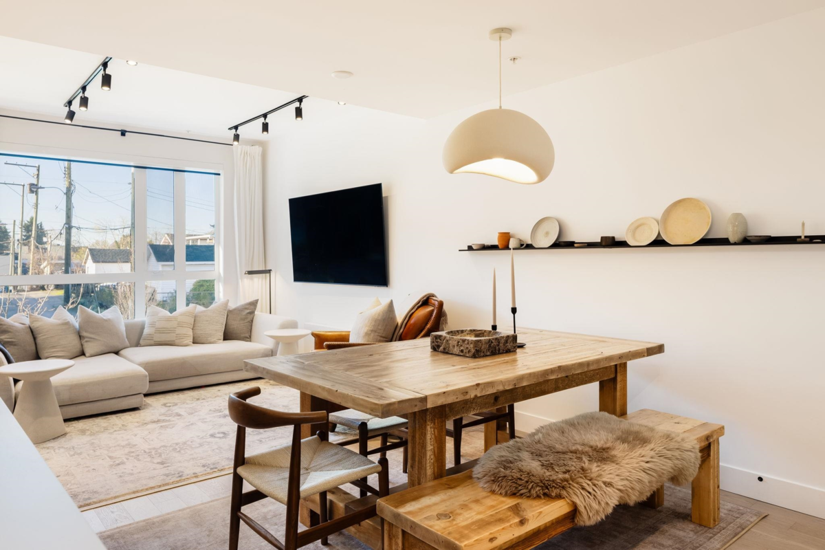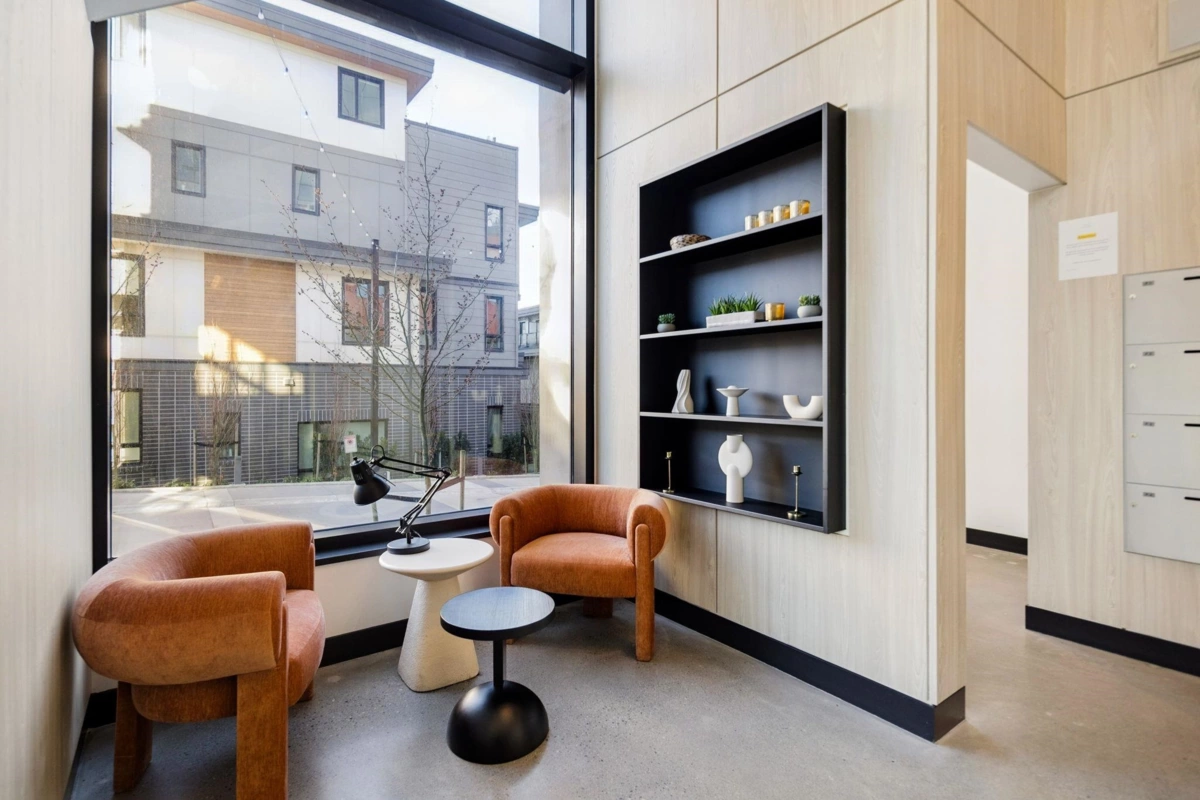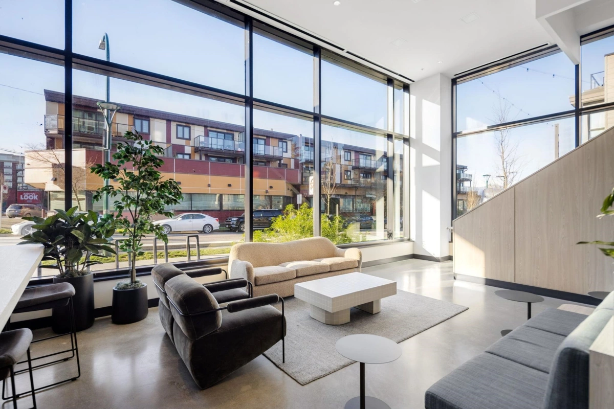 This exceptional 3 bed, 2.5 bath TH at 'Format' by Cressey offers 1,451 sq. ft. of contemporary living space w/ a stunning rooftop terrace overlooking beautiful City & Mountain VIEWS! Ideal for entertaining, features include brushed white oak flooring, bespoke matte black kitchen millwork, integrated Fulgor Milano appliances, A/C and radiant heated bathroom flooring. One of the most prime situated townhomes in the strata, West facing with natural light day to night & evening sunsets! Detached from the 16 story tower w/ street level access, this home offers privacy & quiet. Oversized windows overlook a quaint, tree-lined street w/ ample additional street parking. Premium amenities incl: fitness centre, workshop, co-working spaces & incredible rooftop terrace w/ 360 views, BBQs + playground.
