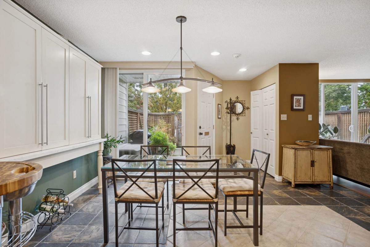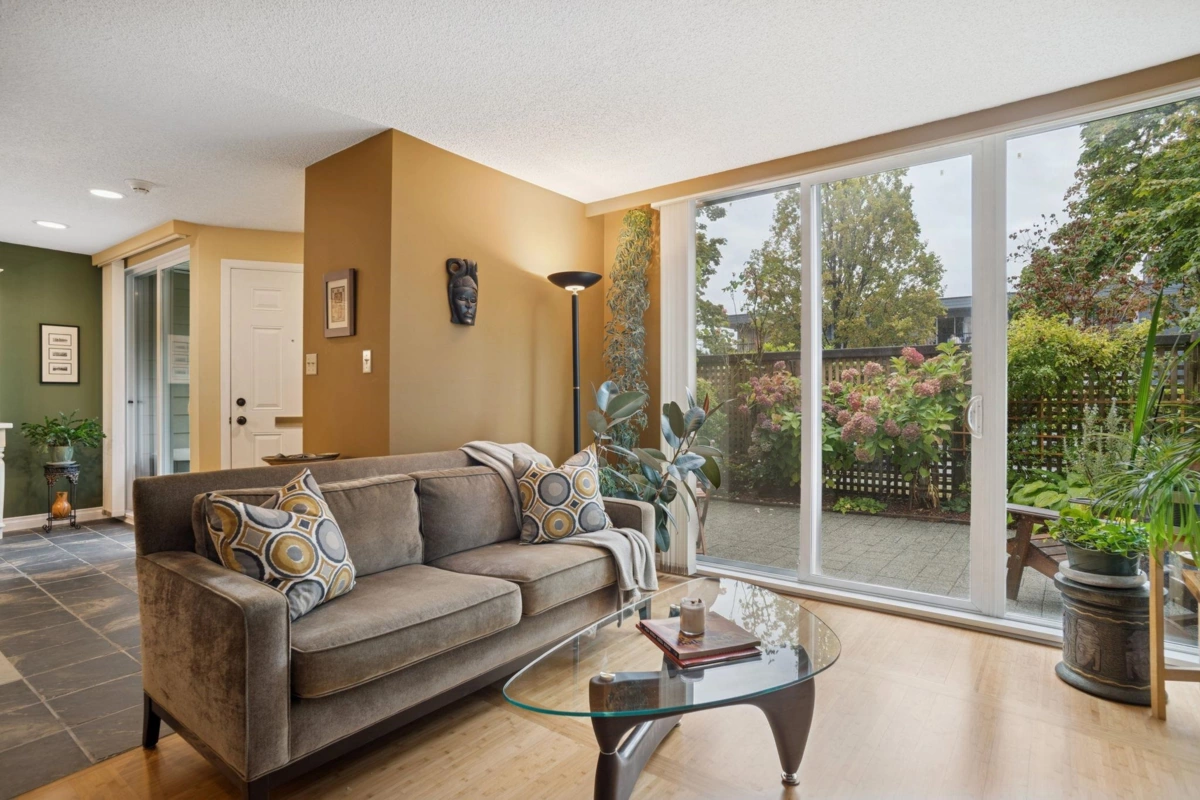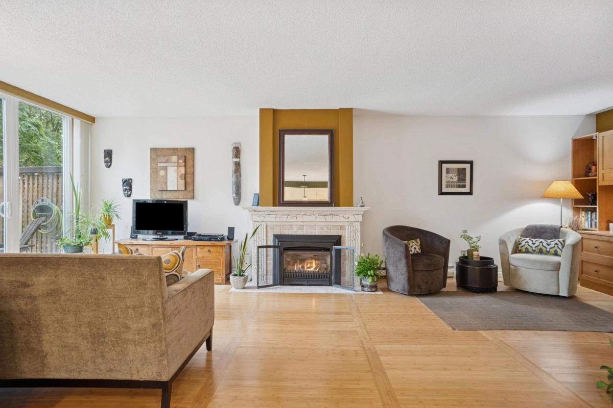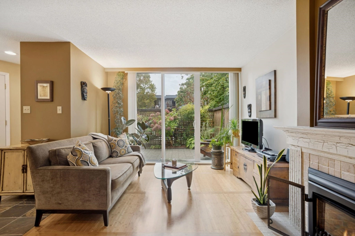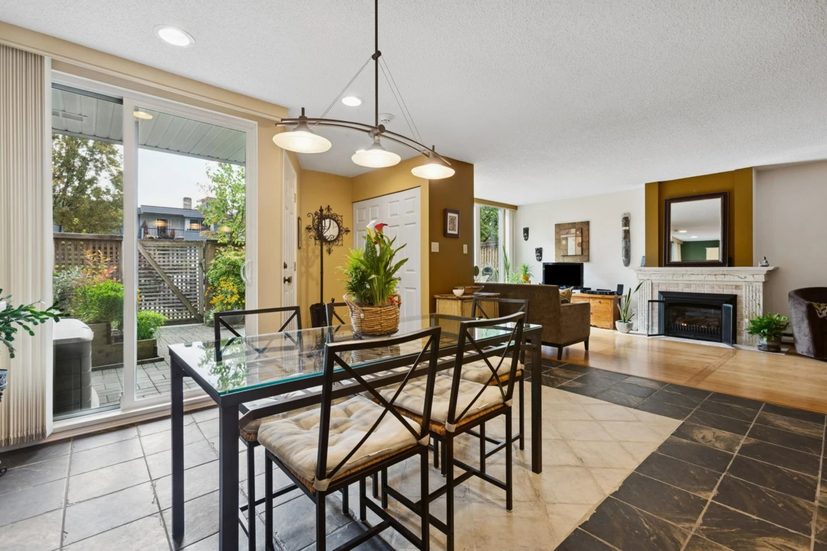 Welcome to this beautifully maintained two-level townhome, ideally situated within steps from the vibrant restaurants & shops of Burnaby Heights. Set on the quiet side of the street, this home offers a peaceful retreat with a generous 351 sq. ft. south-facing patio & a covered balcony off the primary bedroom—perfect for year-round enjoyment. The main level boasts a wide, open floor plan with two sliding doors that flood the space with natural light & provide seamless access to the patio. A cozy gas fireplace adds warmth & charm, creating a welcoming ambiance throughout the main floor. Upstairs, you'll find two spacious bedrooms and two full bathrooms, including a large primary suite with a walk-in closet & private ensuite with walk-in shower. 1 secure parking & storage locker included.