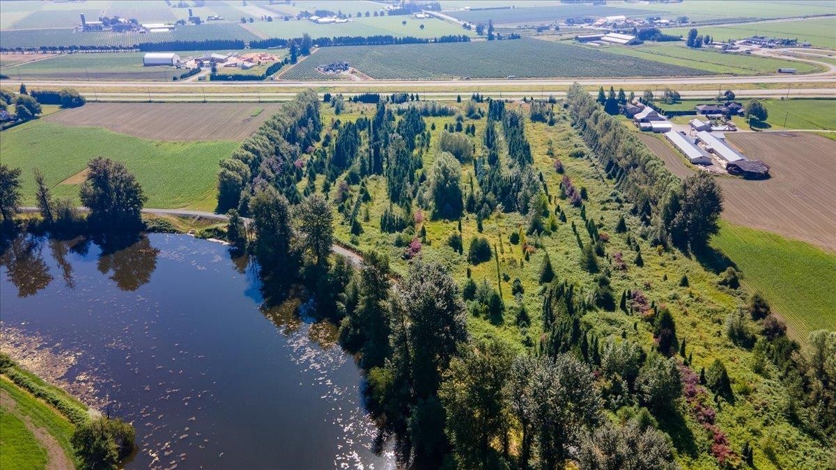 Located east of Abbotsford, this 21.56-acre parcel of prime agricultural land offers exceptional highway exposure and accessibility, making it a strong long-term investment opportunity. The property backs onto a scenic walking trail along the Sumas River, enhancing both its natural appeal and future value. Ideally positioned just minutes from Highway l , Costco, the U.S. border, and the University of the Fraser Valley, this land benefits from proximity to key amenities and transportation corridors. Offering versatility for agricultural use or a custom acreage estate home, this property presents excellent potential for capital appreciation and strategic land holding.