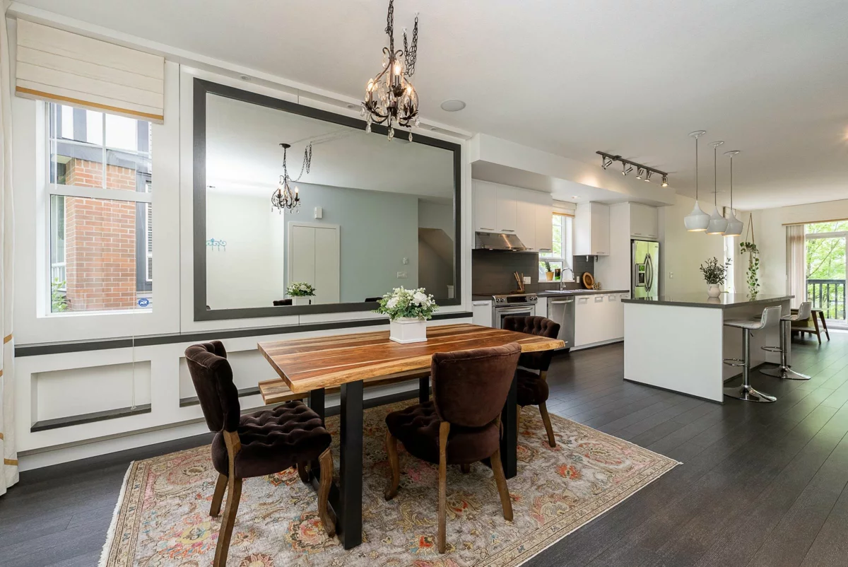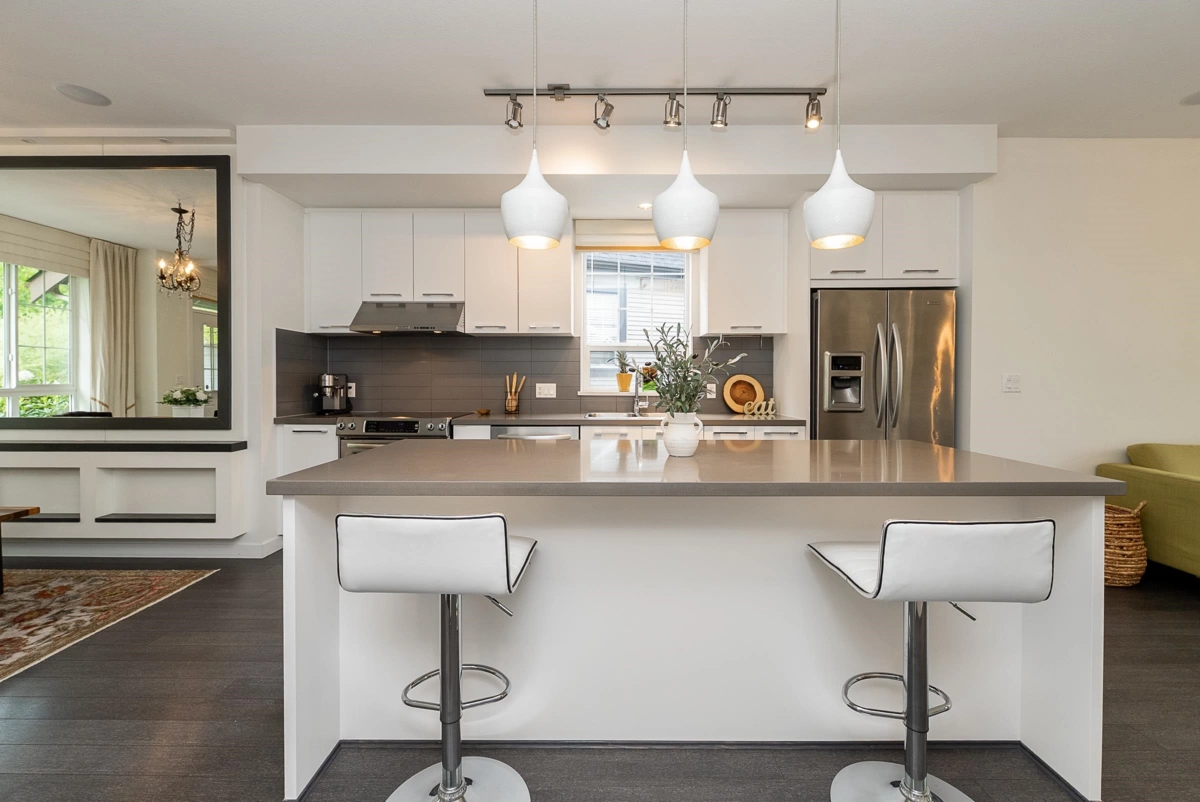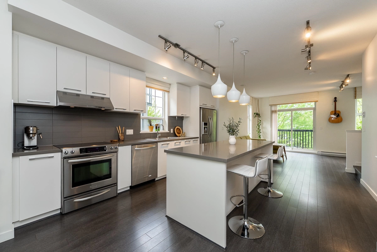 Outstanding opportunity to own this stunning END-UNIT former SHOW HOME at Polygon's Farrington Park - one of the most sought-after complexes in Burke Mountain. This 3 bed, 3 bath home features 1,443 sq/ft of living space and a spacious, bright + open layout. Main offers a gourmet kitchen w/ stone counters, flat panel cabinetry, SS appliances + access to private balcony. Large open concept living + dining room & powder room complete the main. Upstairs you'll find 3 beds including the primary w/ en-suite plus a second full bathroom. Tandem garage w/ epoxy flooring & extra storage, full-size parking pad + front fenced-yard. The location is incredible - situated across the street from beautiful Galloway Park, with a playground, splash pad + sports court. Close to schools, trails and transit.