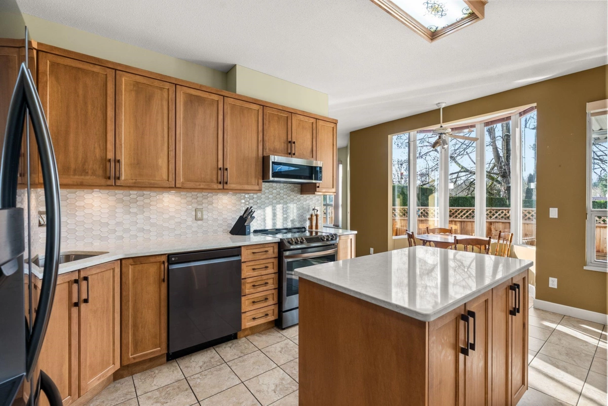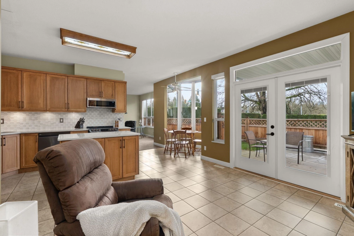 FULLY DETACHED TOWNHOME WITH NO AGE RESTRICTIONS! BIG and bright END-UNIT townhome with LOTS OF WINDOWS with tons of light from the south and west facing yard. Over 1,900 square feet of living space, 3 bedrooms upstairs, and a den on the main floor, this home is all that you'd want in a detached SINGLE FAMILY HOME, with none of the yard-work and exterior maintenance. The RENOVATED KITCHEN has lots of cabinet space, and strikes a perfect balance of style to fit in well with the rest of the home. The FULLY FENCED YARD is perfect for dog owners, COVERED DECK ideal for year round barbecuing, and DOUBLE GARAGE and DRIVEWAY for LOTS OF EXTRA PARKING! Close to Walnut Grove shopping, schools, as well as a short drive to Willoughby Town Centre, the location can't be beat! NO DOG SIZE RESTRICTIONS