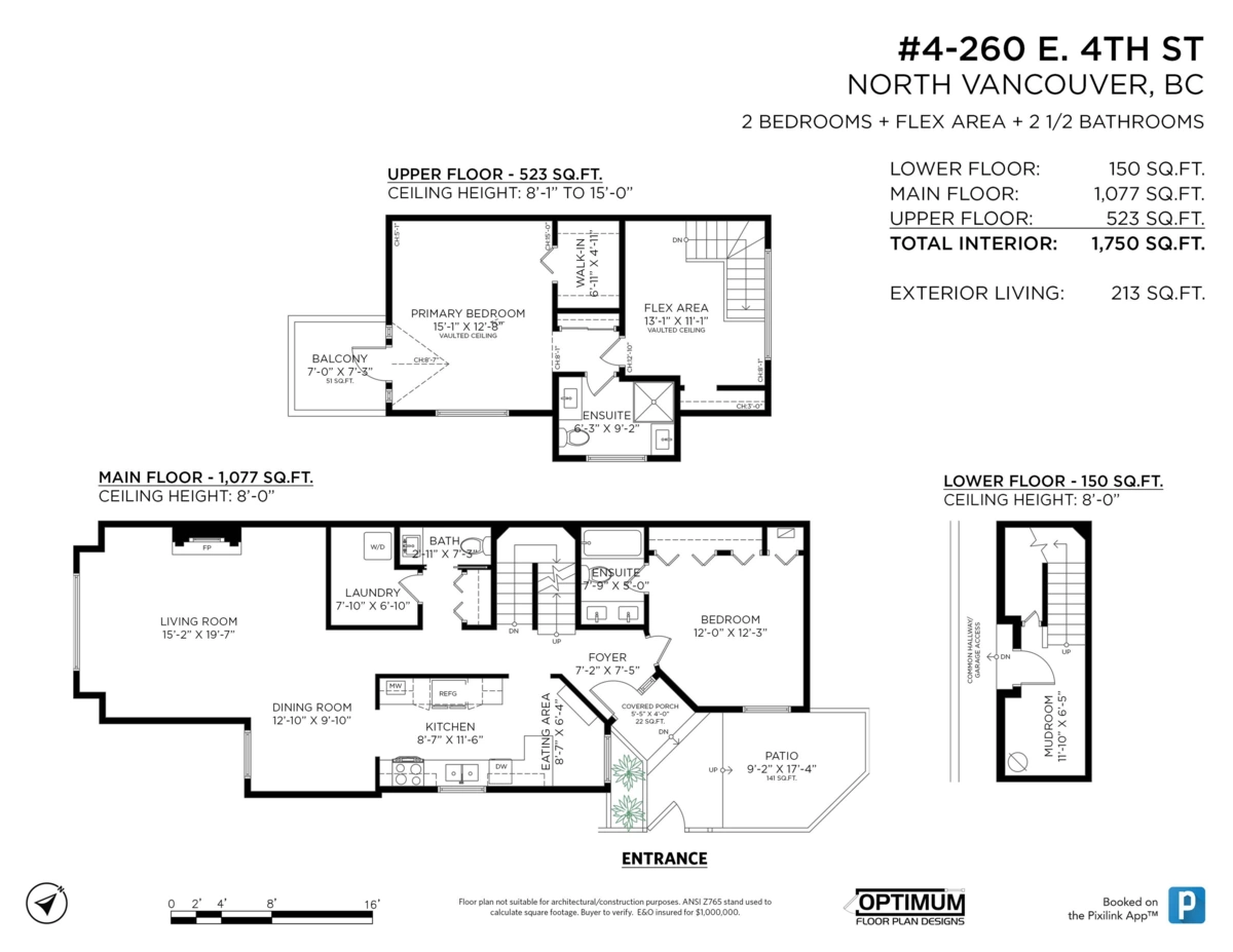 Townhome Living in Lower Lonsdale with Harbour and City Views! 2 bedroom+Den perfect family or couple home or downsizer w/ 1750 sq.ft. Main floor open plan w/ feels like a larger home. Stylish new Merit Gourmet kitchen w/ custom cabinetry, Dekton counters, stainless steel appliances, coffee station+eating area, new oak hardwood floors. Living/dining open plan w/ room for piano, powder and laundry room w/ freezer. Oversized bedrooms w/ ensuites allow for Primary bedroom on main floor or top floor. Upper floor features vaulted ceilings and bedroom with city+ harbour views and private balcony + spacious "flex" room can be home office or 3rd bedroom for guests. Lower level mudroom direct access to 2 parking, storage. Security system Amazing location to Quay, restaurants. Live here!