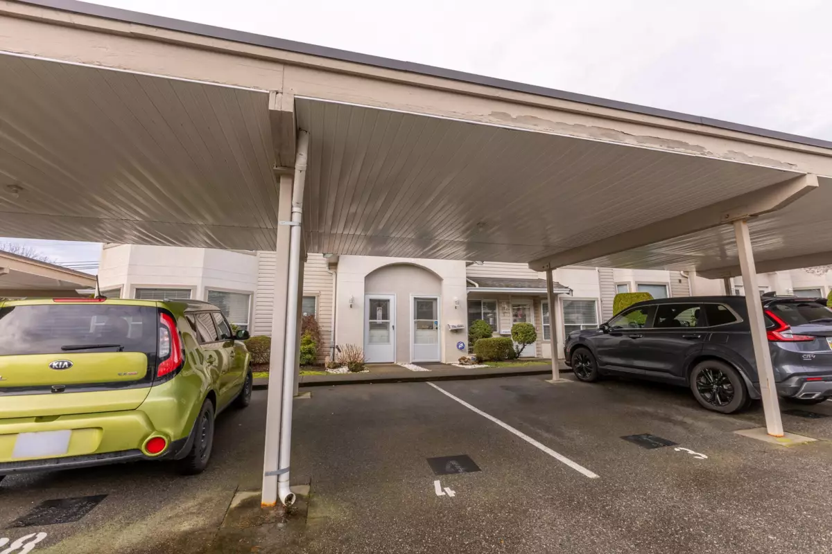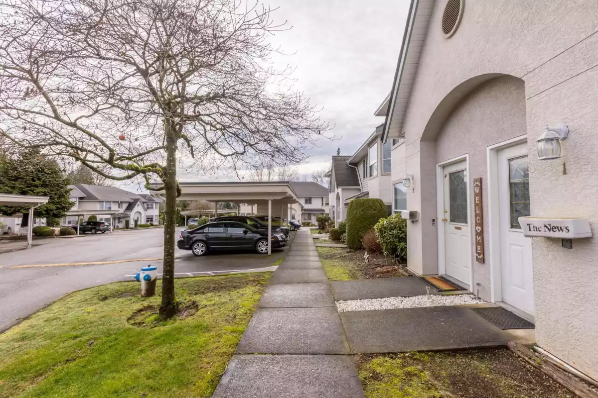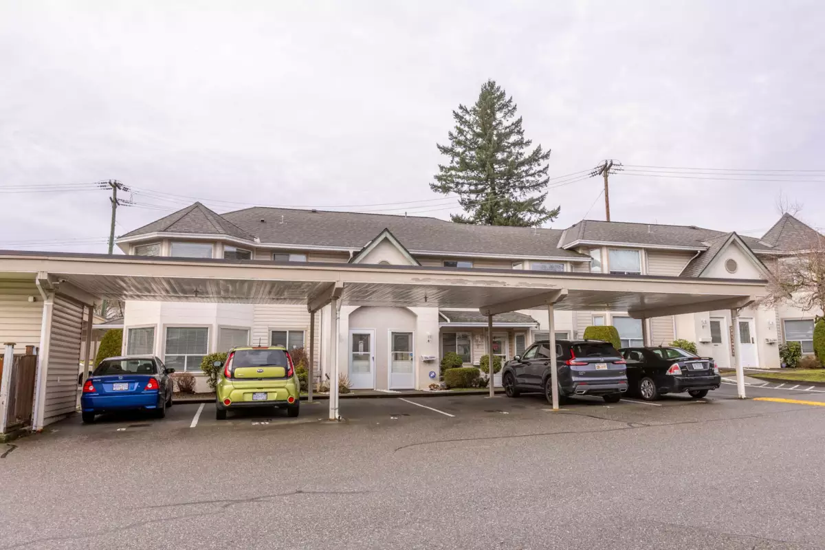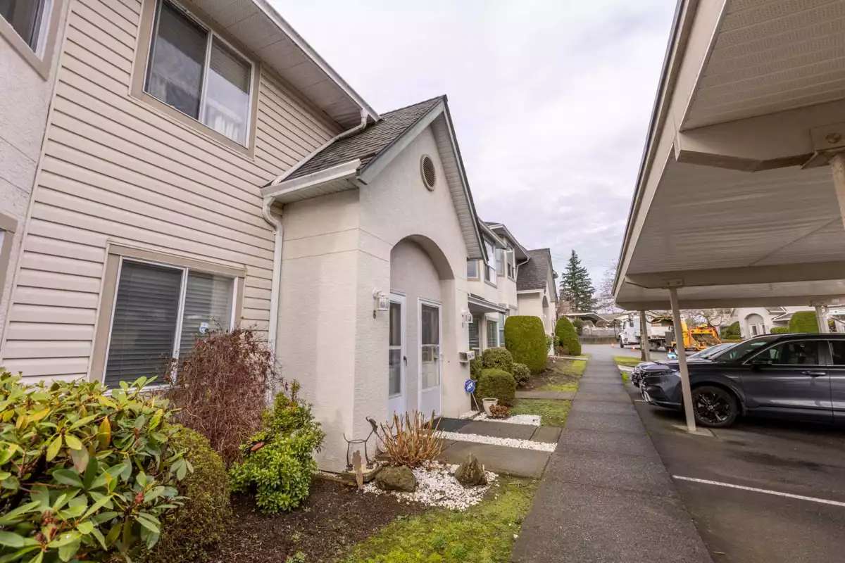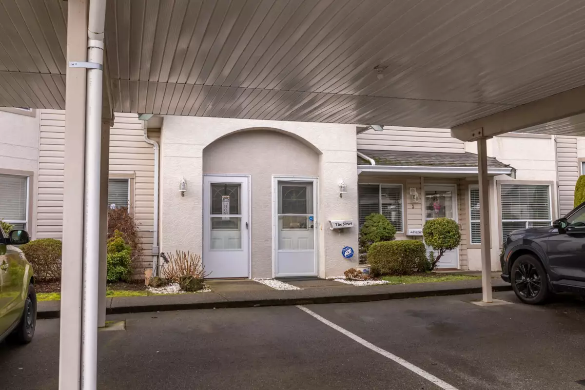 Welcome to Forest Edge. This upper level townhouse boasts over 1250 sqft, with 2 bedrooms and 1.5 baths. When comparing against other stacked townhomes this is a natural choice. You have two full bedrooms, located away from each, which is great for guests or privacy, when working late and not bothering your spouse. There is a ton of storage inside the home, you have your own private, separate access, two parking stalls (one covered right outside your front door), gas fireplace and 1 cat or 1 small dog (max 14 inches at the shoulder) is allowed. This complex backs on to Old Riverside Park and Discovery Trail for those that like to walk. This 55+ complex is a well run strata that features new roofs.