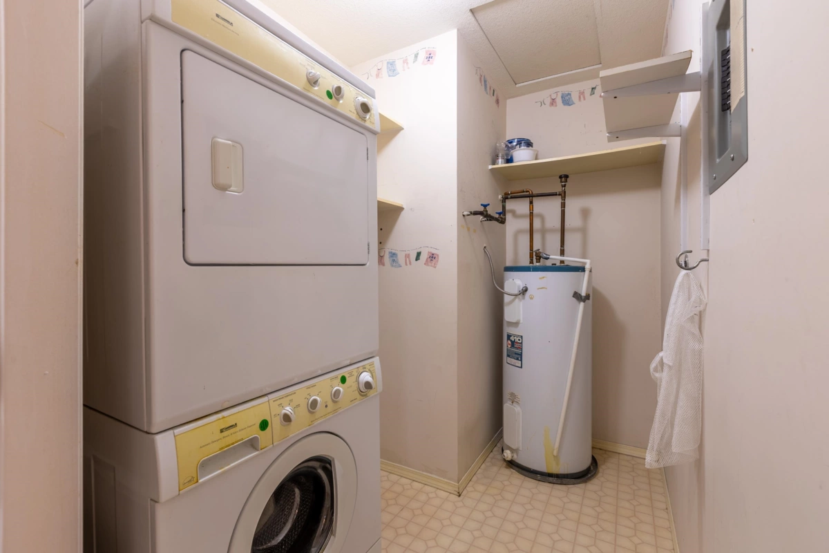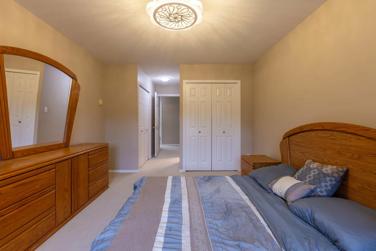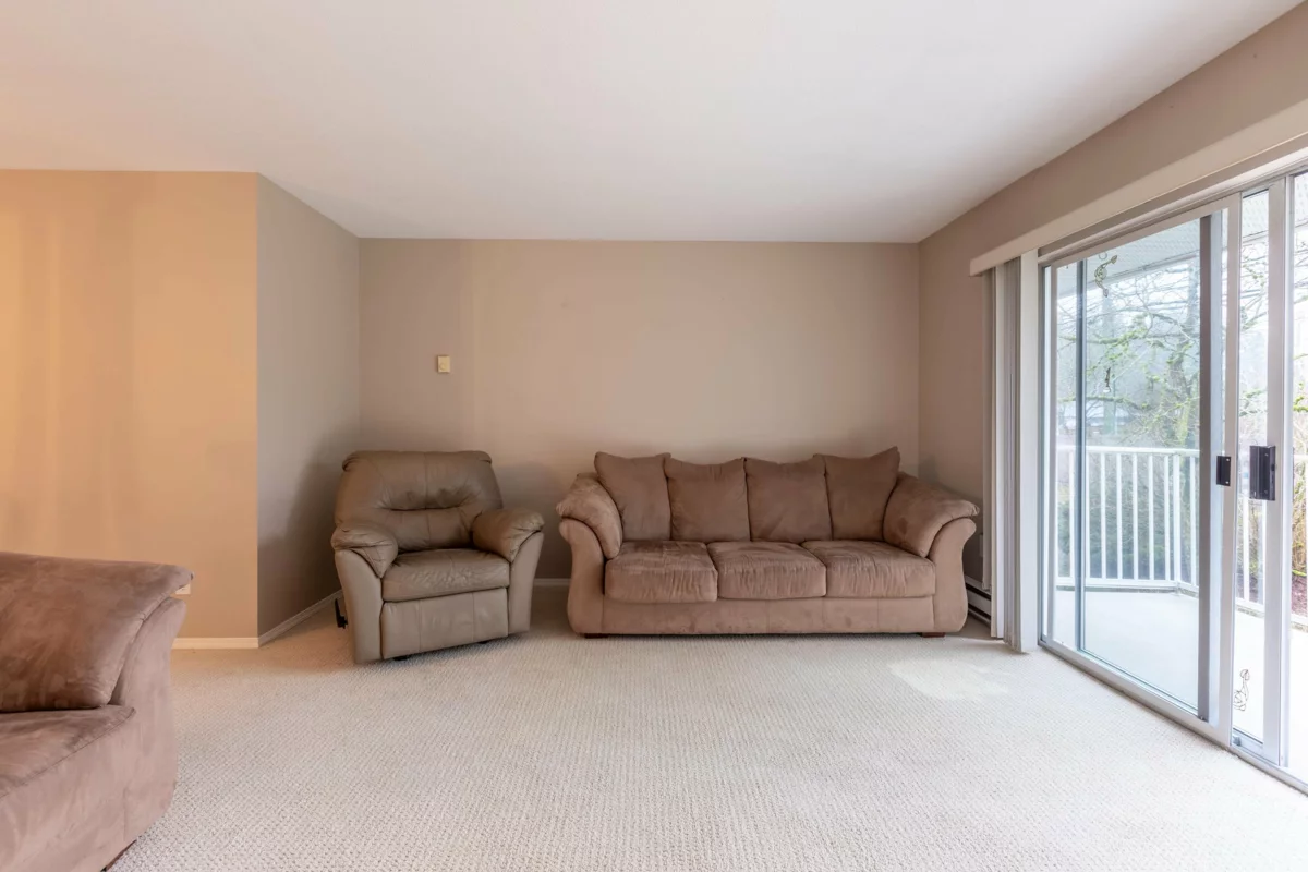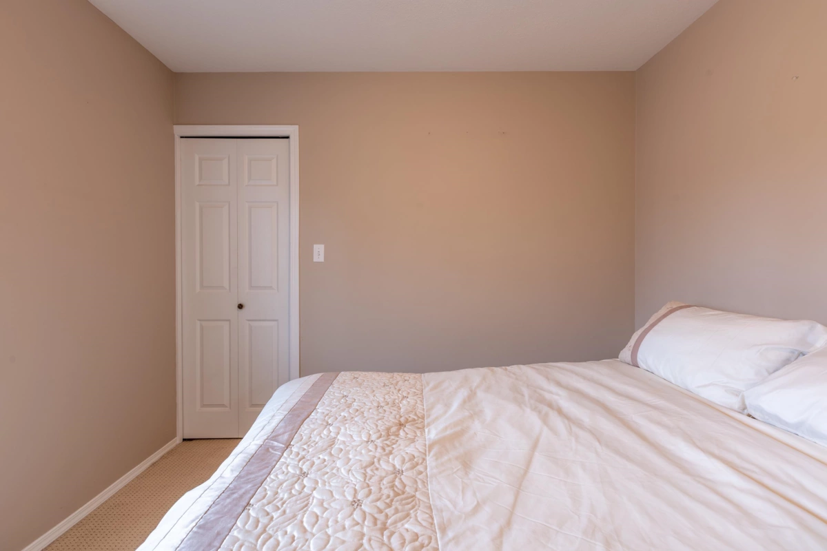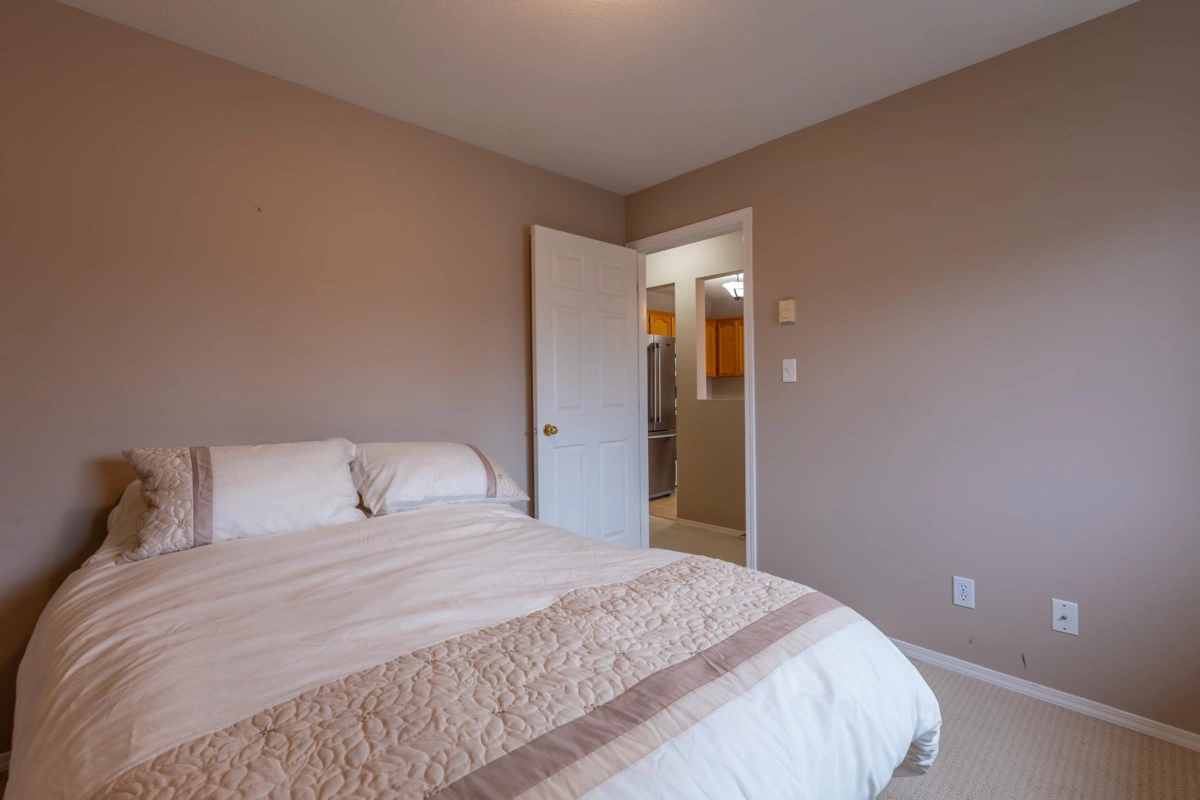 Welcome to Forest Edge. This upper level townhouse boasts over 1250 sqft, with 2 bedrooms and 1.5 baths. When comparing against other stacked townhomes this is a natural choice. You have two full bedrooms, located away from each, which is great for guests or privacy, when working late and not bothering your spouse. There is a ton of storage inside the home, you have your own private, separate access, two parking stalls (one covered right outside your front door), gas fireplace and 1 cat or 1 small dog (max 14 inches at the shoulder) is allowed. This complex backs on to Old Riverside Park and Discovery Trail for those that like to walk. This 55+ complex is a well run strata that features new roofs.