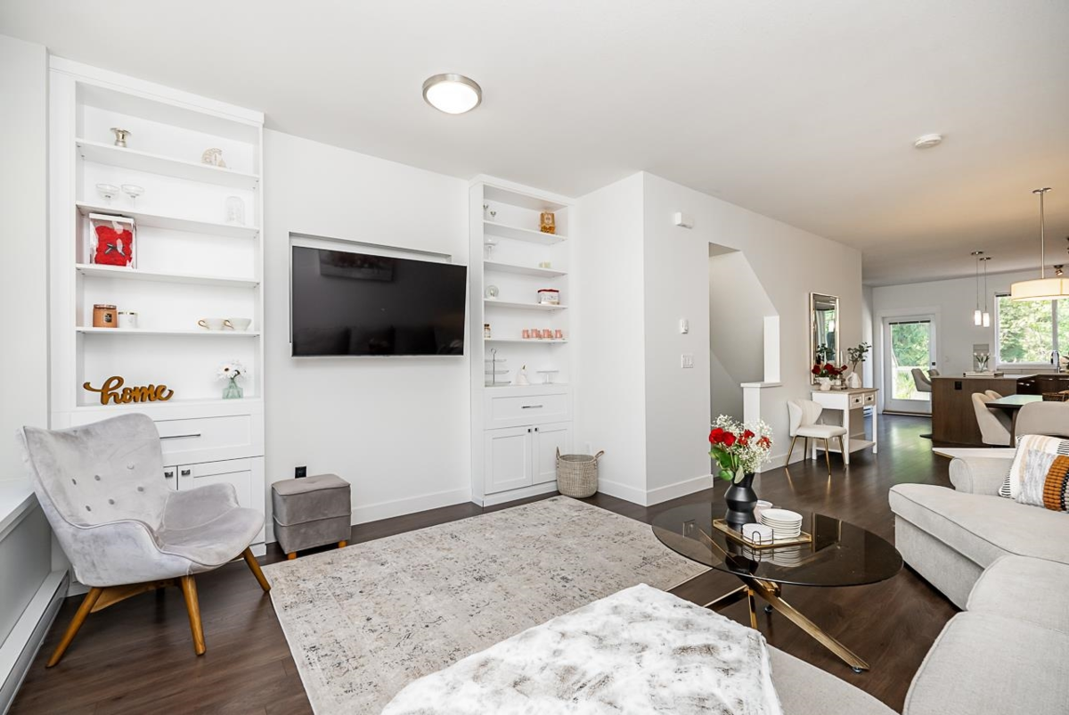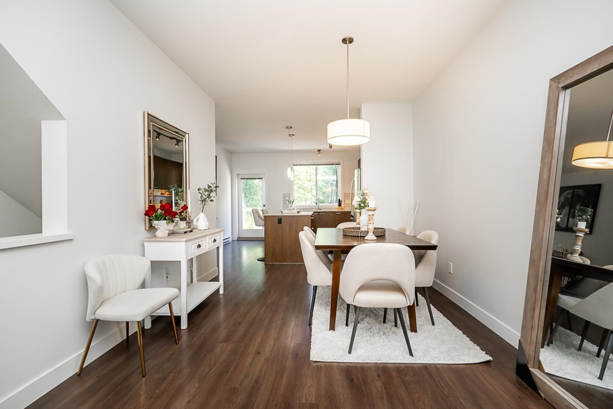 Beautifully updated townhome at Wynwood, located just steps from Galloway Park. Situated in the highly desirable neighbourhood of Burke Mountain, this three bedroom, two bathroom home features an open layout with recent updates including brand new carpet, fresh paint throughout and new hot water tank. The spacious kitchen offers quartz countertops, large island, SS appliances and a gas range. Enjoy your morning coffee on your back deck, which is just off the kitchen. Spacious living has built-in display shelving and storage. Bright throughout the home with Western and Eastern exposure. Double tandem garage plus convenient parking out front for guests. Walking distance to shops, parks, transit and Smiling Creek Elementary. The perfect place to call home.