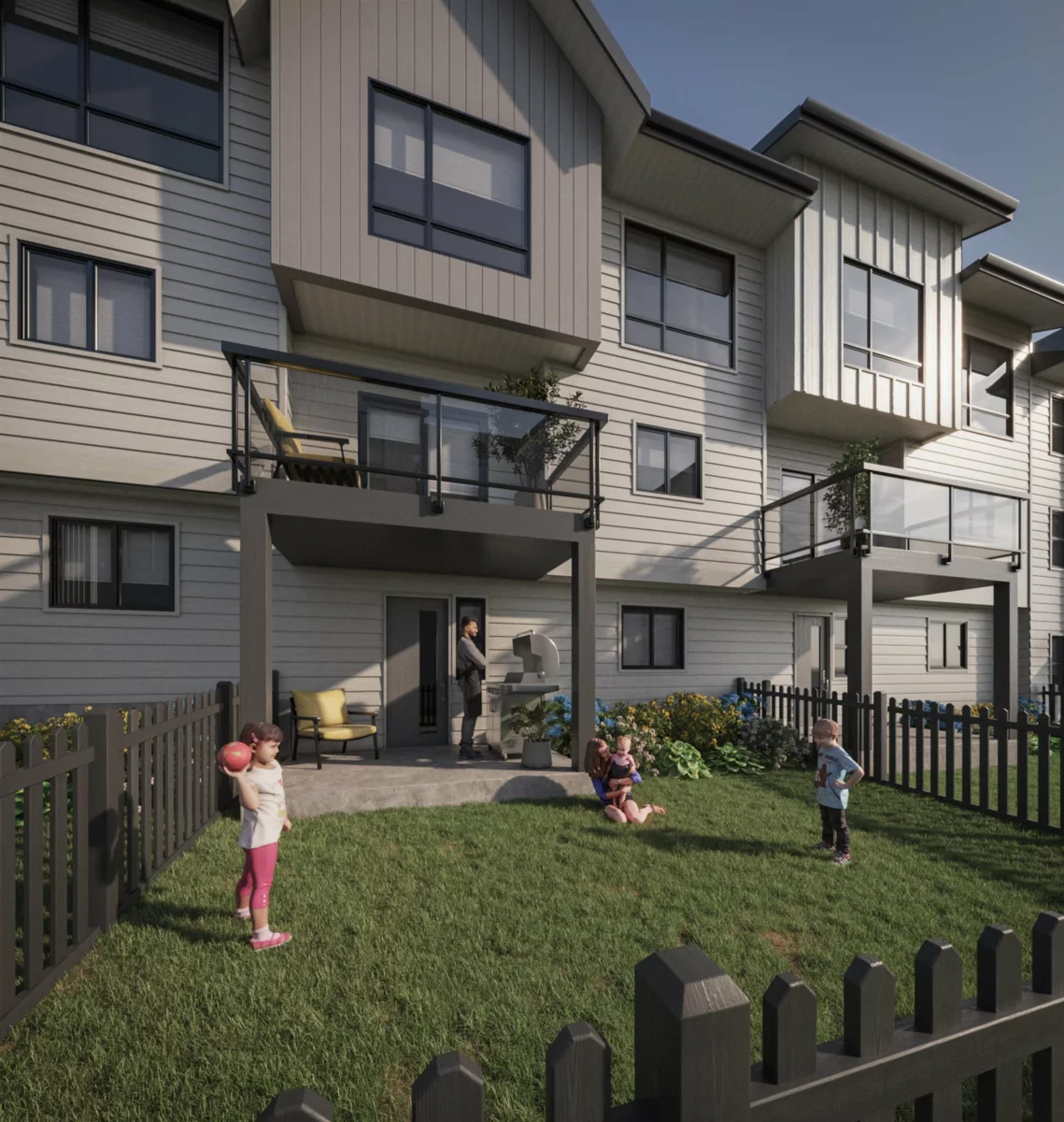 WHAT YOU’VE BEEN WAITING FOR IS HERE — WHERE NATURAL TRANQUILITY AND VIBRANT, URBAN LIVING GO HAND IN HAND IN FAMILY-ORIENTED CENTRAL GORDON, LANGLEY. Gradience is more than just an address, it’s an invitation to flourish. It’s a harmony of urban convenience, suburban space, and outdoor serenity, with endless opportunities to enhance your life and nurture connection. A hillside haven of 62 three- and four-bedroom townhomes, friendly exteriors and modern interiors support your family’s evolving needs and well-being. A shared central courtyard brings neighbours together to swap stories and invites you to enjoy the fresh air. Nearby, Langley’s abundant shops and services provide an effortless flow to your days.