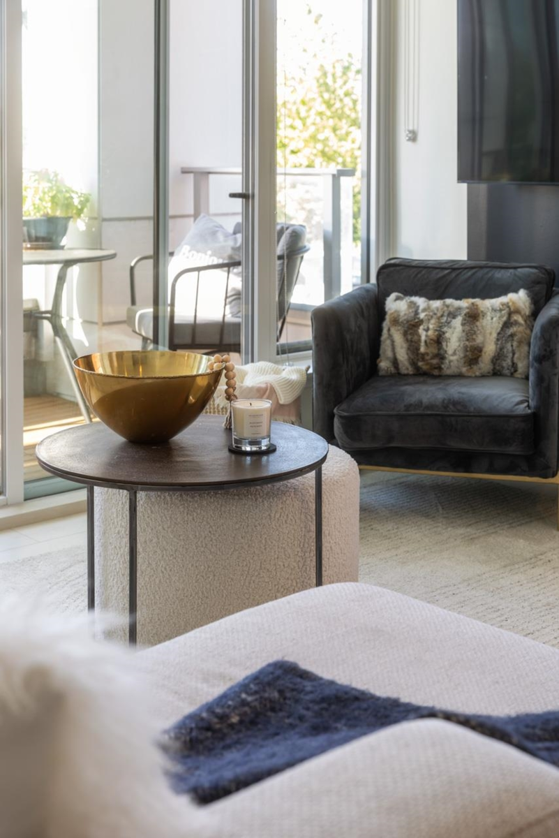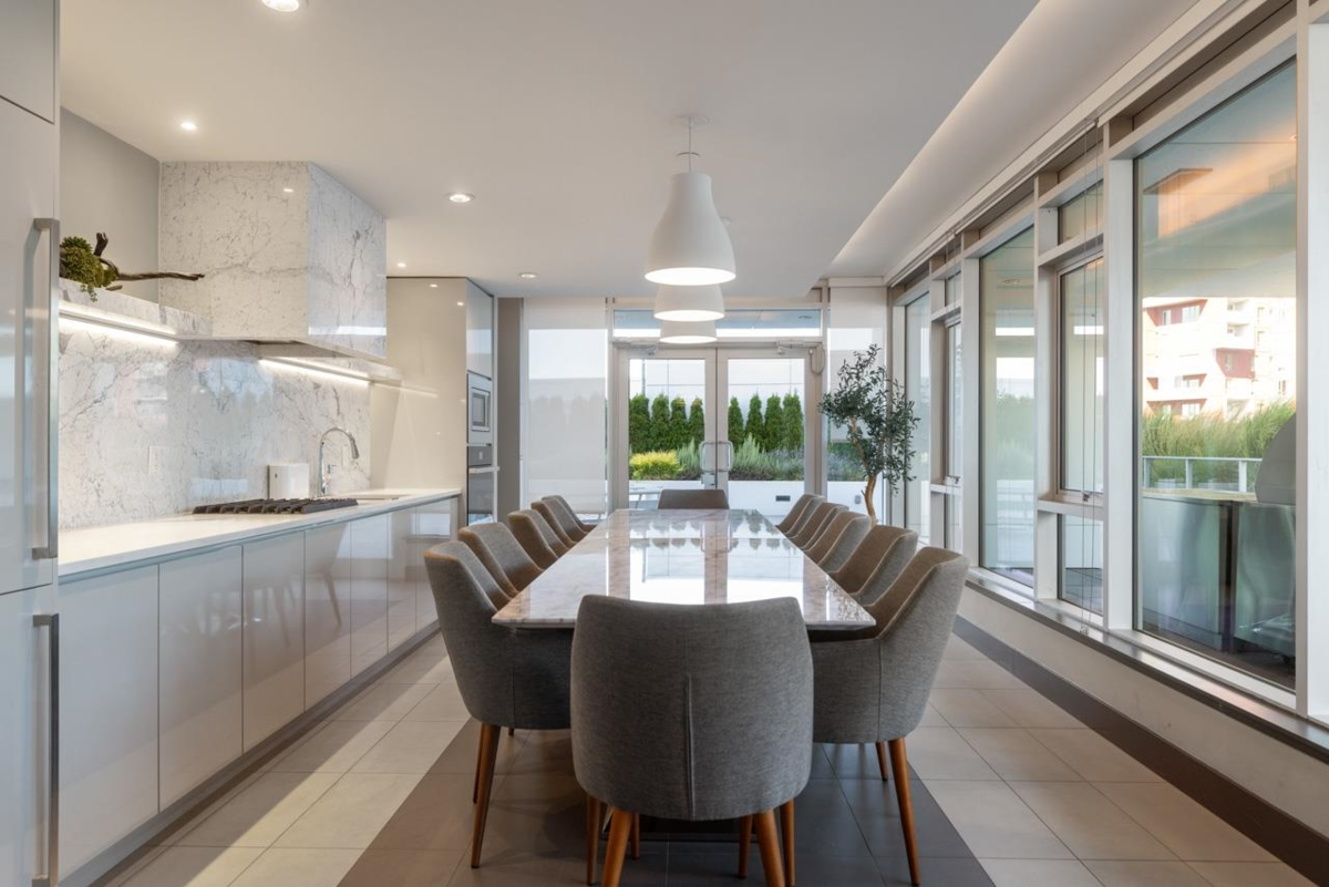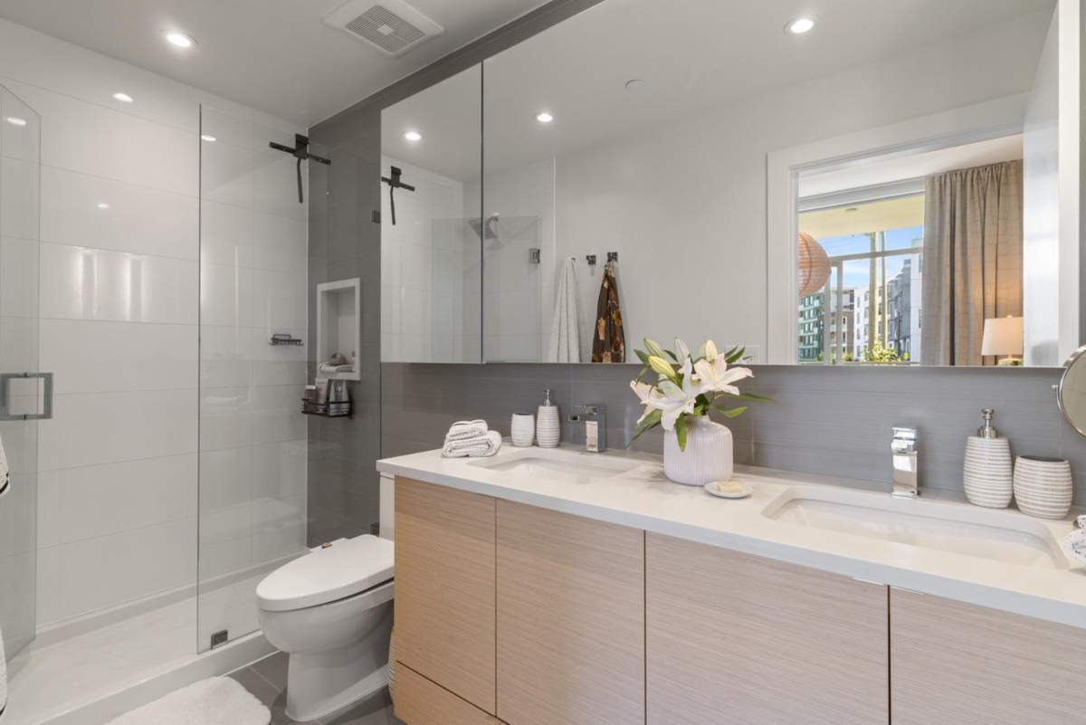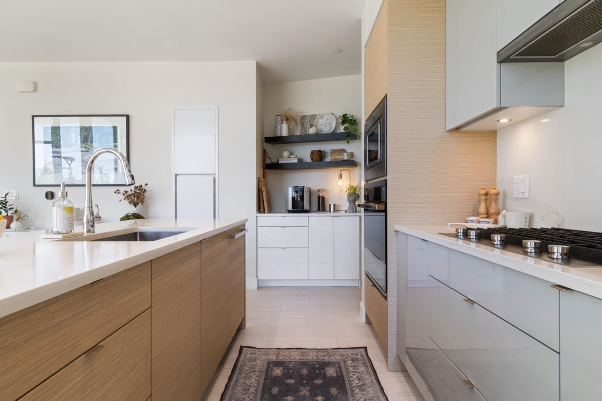 Best townhouse layout at MODE in the River District! Rare corner unit with 3 beds up, 3 baths, flex space, and 1,700+ sqft of smartly designed living. Bright and airy with oversized windows, two balconies, and great natural light. Upgrades include a custom wine bar w/ fridge and built-in coffee station. Gourmet kitchen features gas range, wall oven, integrated fridge/dishwasher, and quartz counters. South-facing with open layout, in-floor heating in primary ensuite, and high-efficiency heating/cooling system. Includes 2 parking and 1 storage. Enjoy resort-style amenities: hot tub, gym, concierge, theater, guest suites, dog wash, co-working hub & more. Steps to Save-On, Starbucks, restaurants, banks, wine shops, riverfront trails & more!