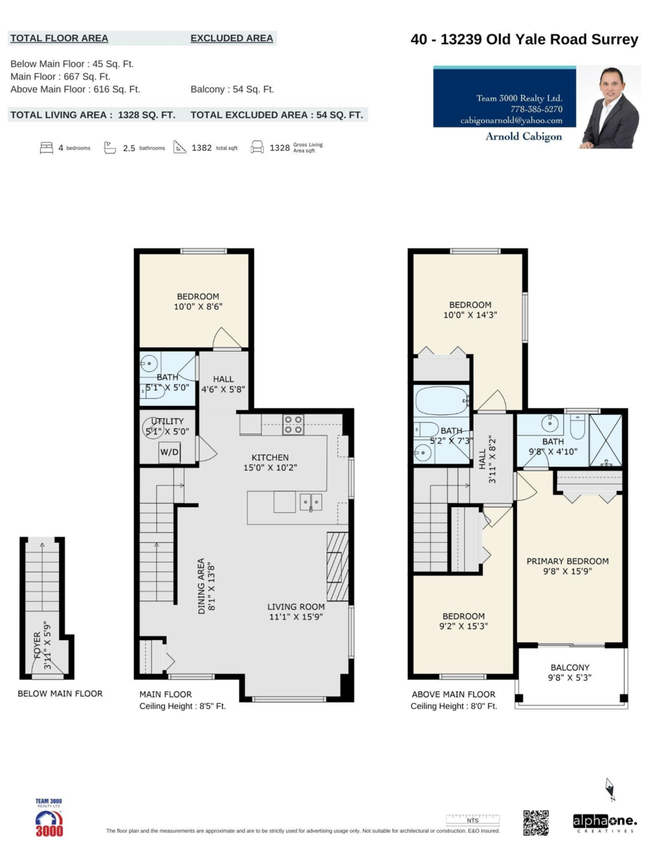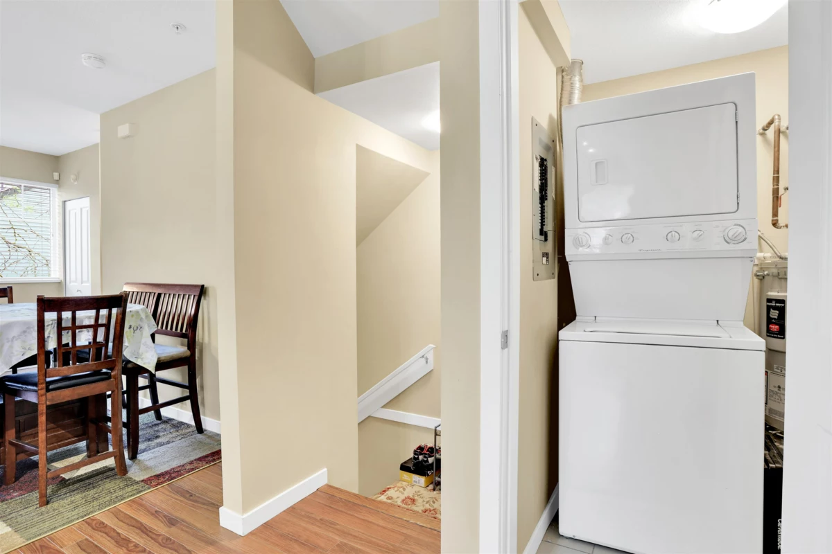 Perfectly Located Home! This bright and cozy corner unit offers exceptional value and comfort. Featuring 4 spacious bedrooms including one conveniently located on the main floor along with a powder room, this home is ideal for families or investors alike. The main level boasts durable laminate flooring. Enjoy cooking in the beautiful kitchen complete with granite countertops, stainless steel appliances and an open concept layout that fills with natural light. Additional highlights include in-suite laundry, two full bathrooms and two dedicated parking spaces. Nestled in a quiet section of the complex, this home offers unbeatable convenience just a 3 minute walk to school, 7 minutes to Central City Mall, and 8 minutes to the SkyTrain. Don’t miss out—book your private showin