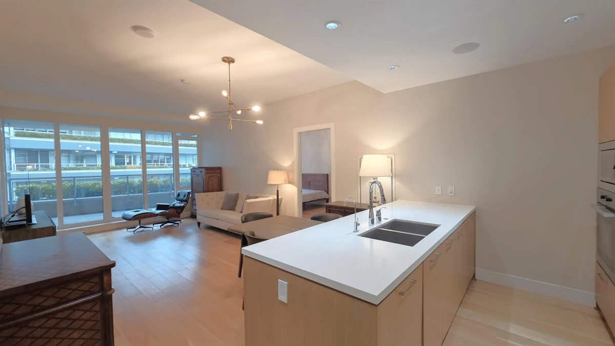 Nestled in the heart of West Vancouver, "EVELYN" by Onni seamlessly blends modern elegance w/ nature’s tranquility. Air-conditioned concrete residence offers 2 beds, 2 baths & a den, boasting 9-foot ceilings & an open concept design that enhances both space and light. Gourmet kitchen features premium SS appliances, gas cooktop & quartz countertops, seamlessly flowing into a bright and airy living area. Floor-to-ceiling windows flood the space with natural light, while a private, landscaped terrace provides the perfect setting for morning coffee or evening gatherings. Luxury features include automated lighting, motorized blinds, soft-close cabinetry. Ideally situated within walking distance of Park Royal, convenient access to transit, Lions Gate Bridge offers both convenience & exclusivity.