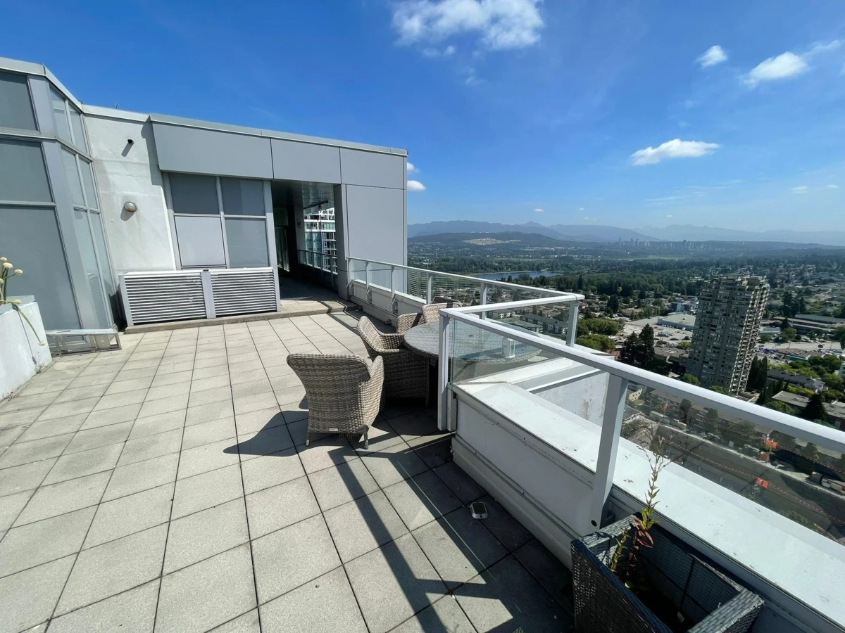 Experience upscale living in this exclusive penthouse at The MET by Concord Pacific. Enjoy breathtaking views from Deer Lake to Mount Baker, soaring 10ft ceilings, and a spacious 708 sqft patio. This 3-bedroom home features a high-end Miele kitchen, marble bathrooms, hardwood floors, and air conditioning. Includes a rare private 2-car garage with storage. Luxury amenities: concierge, golf simulator, karaoke room, lounge & more—all in the heart of Metrotown.Property being "SOLD AS IS -WHERE IS"