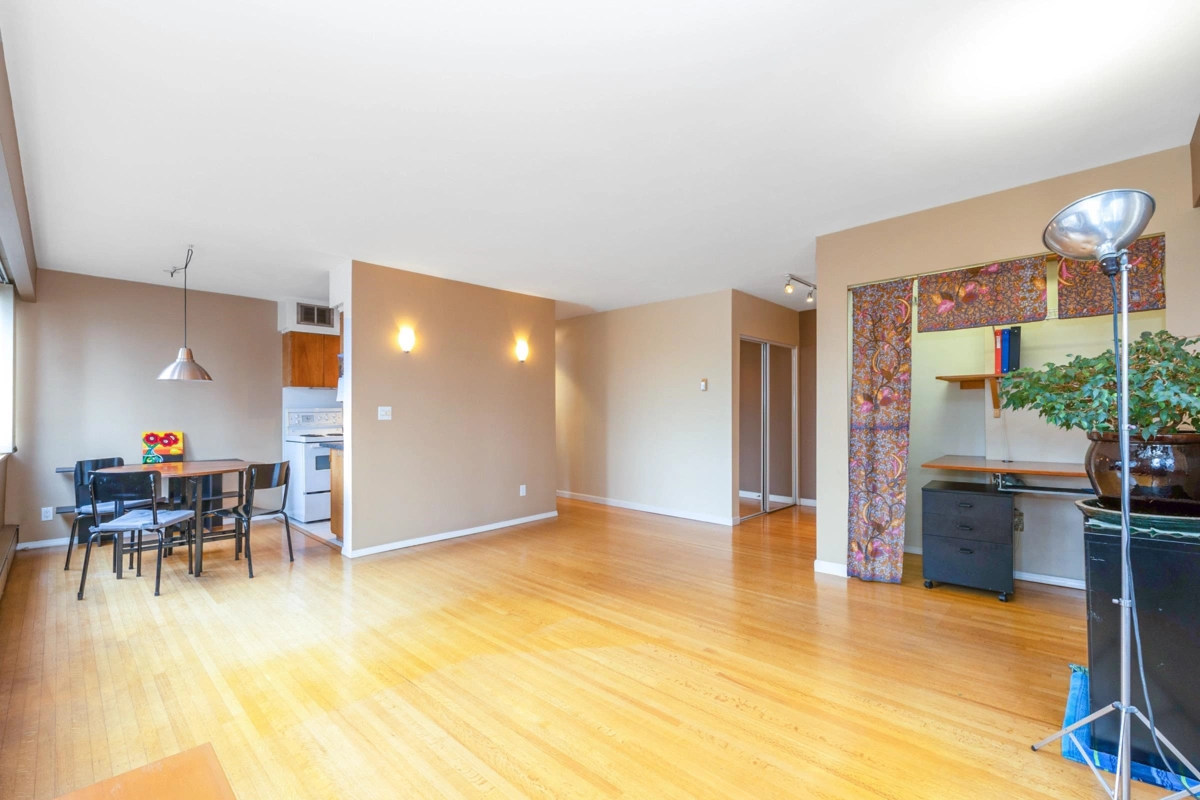 DIANNE COURT Mid-Century Modern landmark one of the best well run co-ops in the West End. Beautifully designed concrete building features oversized windows spanning the entire suite, filling the home with natural light. Spacious corner 1-bdrm with water views, solid oak hardwood floors throughout and updated over the years. Move in ready. Steps from Sunset Beach, English Bay, the Seawall, Stanley Park, and the restaurants/shops along Davie Street. 19+ adult-oriented building with no pets, no smoking, and no rentals, requiring 25–35% down. Well maintained: new roof, plumbing risers done in 2024. A half locker is included; parking via waitlist. Bike/e-scooter storage can be rented from the co-op. EV charging is available.