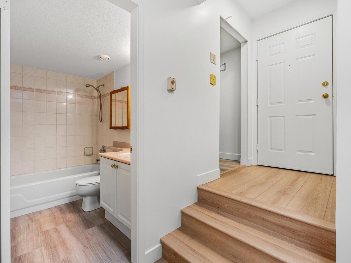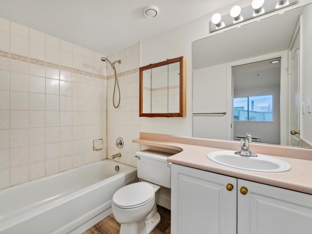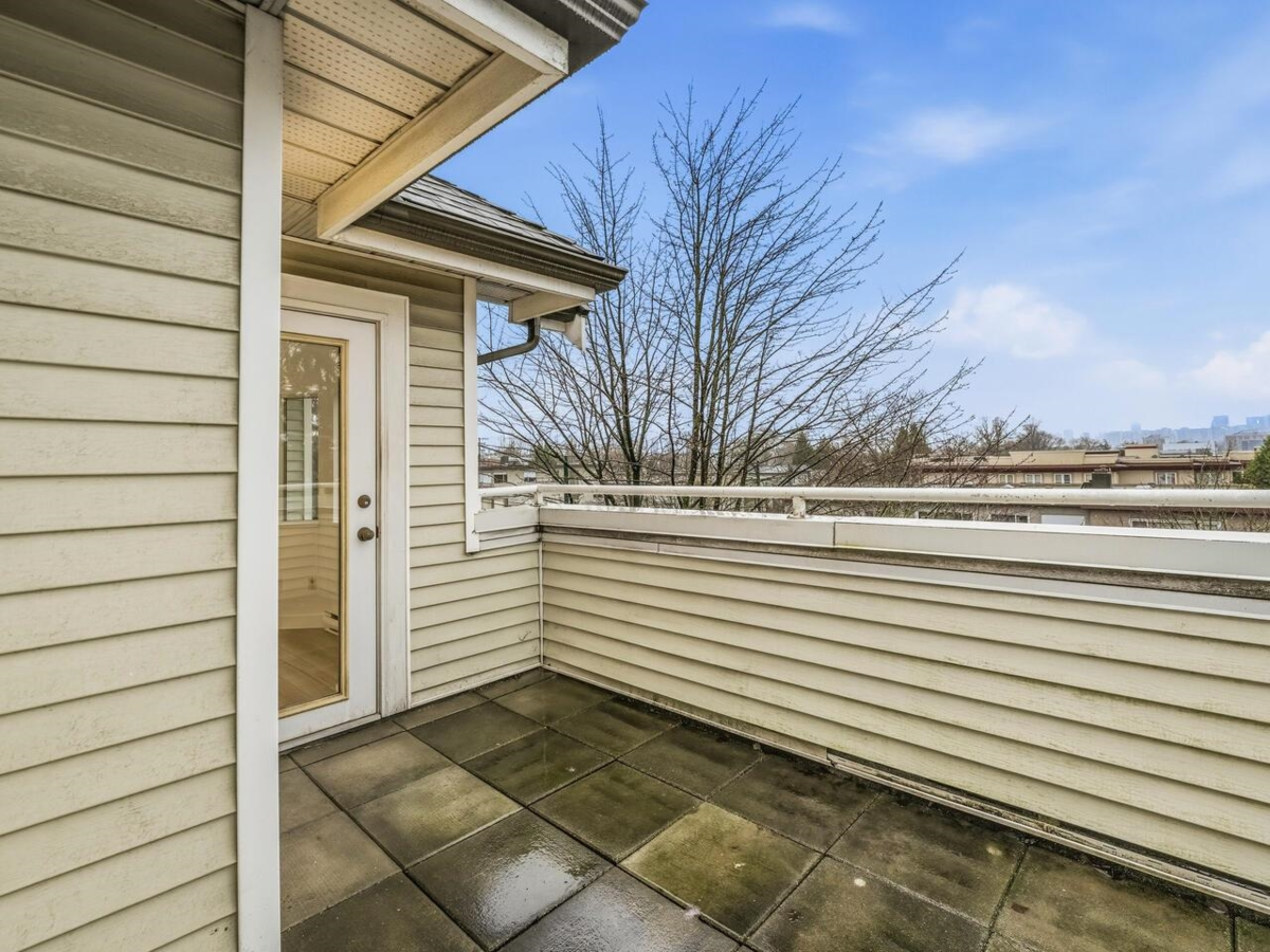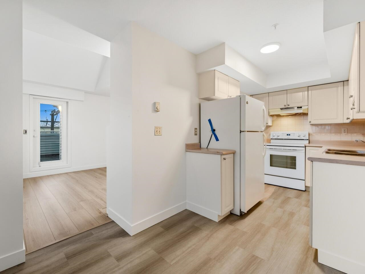 TOP FLOOR, CORNER SUITE WITH A CITY VIEW! This well laid out two bedroom condo is a rare find. With spacious patio, vaulted ceilings, brand new laminate and vinyl flooring throughout, new laundry pair, and fresh paint, it's move in ready, or add value with cosmetic kitchen and bathroom ideas. Very bright with loads of windows facing North and West, enjoy the view and great light all year long. The location is unbeatable - steps to Commercial Drive, The York, The Cultch and all that this desirable pocket of East Vancouver has to offer. Private end unit in a solid, well maintained building with a newer roof and proactive and friendly strata. One pet allowed up to 44 lbs, includes two parking stalls, gym, sauna, and amenity room. Open House Sunday January 25th from 12:30pm - 2:00pm.