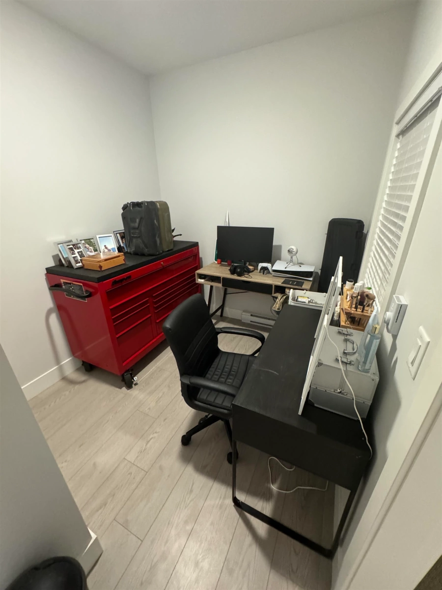 Welcome to Genesis. This well designed 2 bedroom unit gives you tons of natural light and upscale laminate flooring. Enjoy the balcony over looking the buildings own putting green. It is also located near the future skytrain station, bus loop and only steps away from plenty of restaurants. Unit includes 1 parking stall with bonus upgraded EV installed.