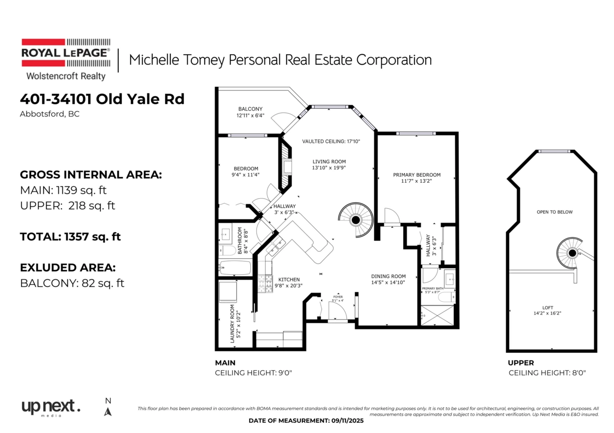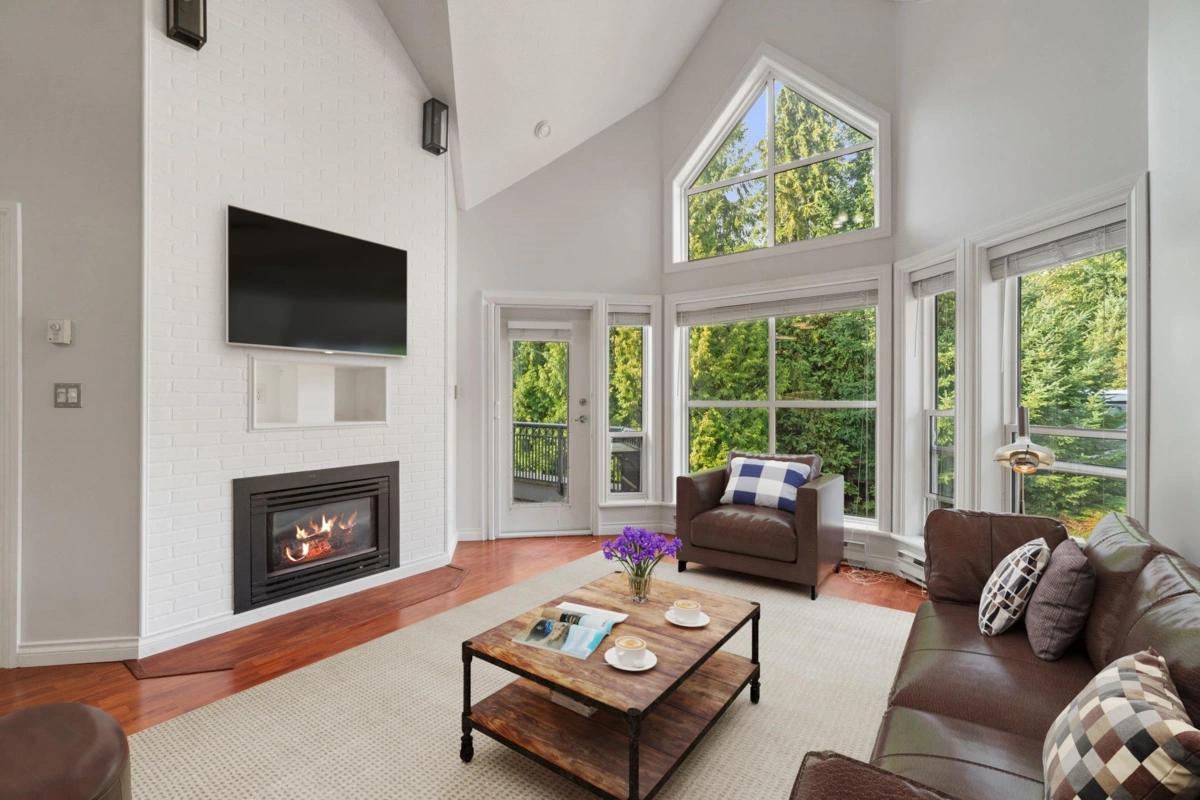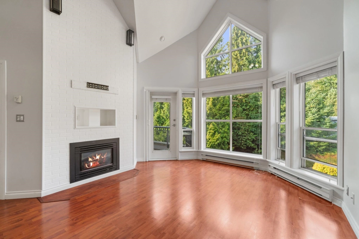Welcome to Yale Terrace! This updated top-floor 2-bed, 2-bath home offers over 1,357 sq ft of modern living space. Soaring 17’ vaulted ceilings and a stunning spiral staircase lead to a versatile loft, ideal for an office or cozy retreat. Recent updates include fresh paint, modern lighting, updated vanities, and newer kitchen appliances. The open-concept layout is perfect for entertaining, with easy flow from kitchen to dining to living area. Enjoy 2 side-by-side parking stalls, a storage locker, and included gas/hot water in your strata fees. Conveniently located near shopping, schools, transit, and Hwy 1. A new roof was installed in 2019. Select photos include virtual staging to showcase the property's potential layout.