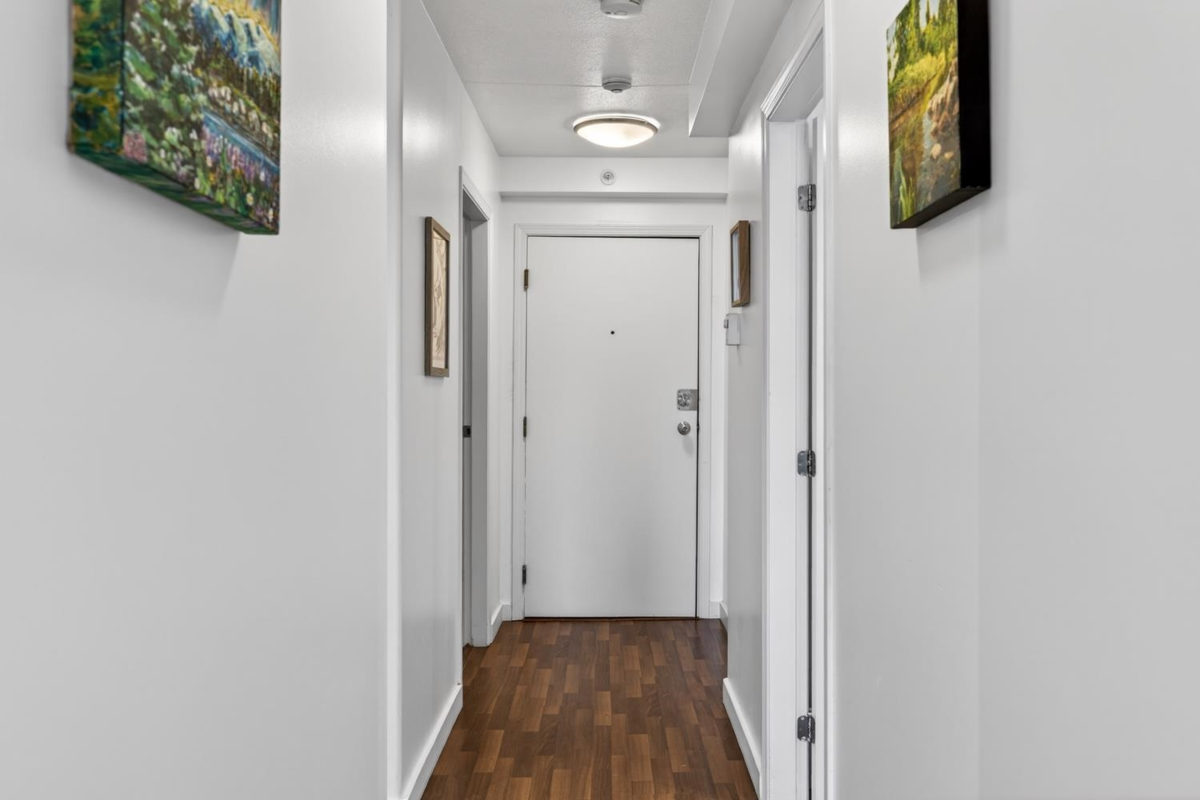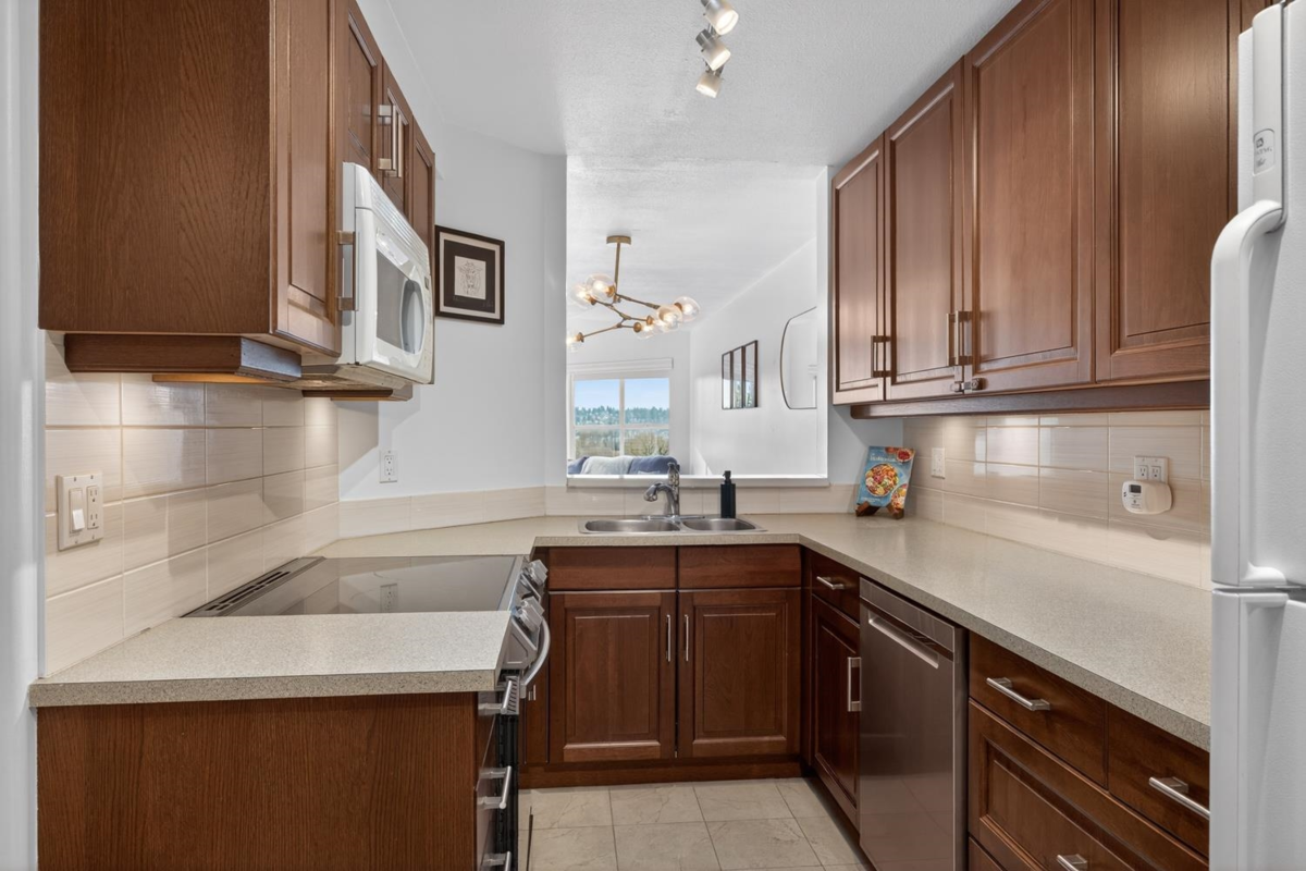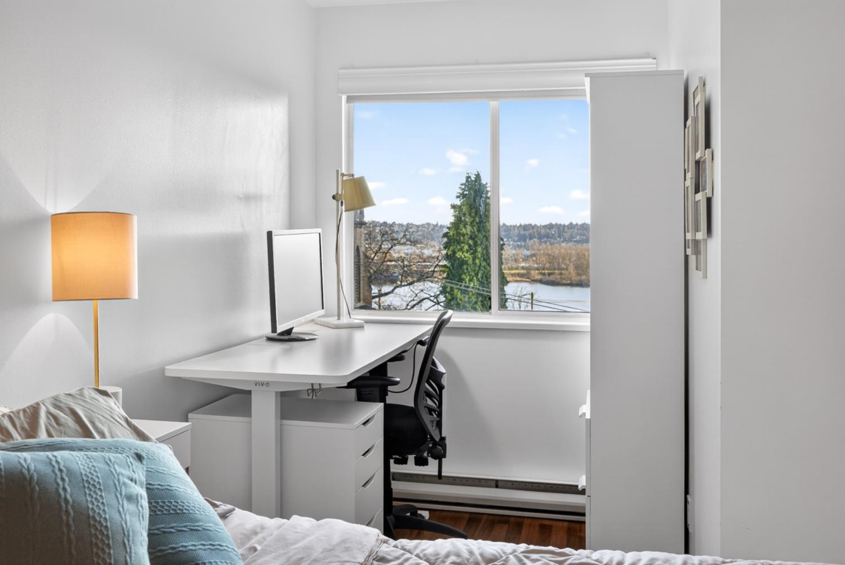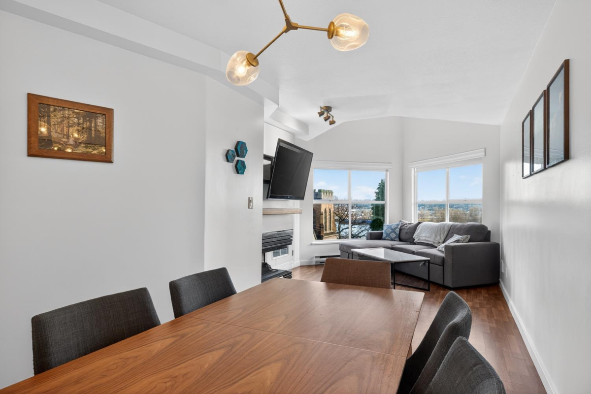 Welcome to this inviting 2-bedroom home at Hillside Place, offering views of the Fraser River. Renovated in 2017, including the kitchen, bathroom, and updated flooring, this home is truly move-in ready. The spacious primary bedroom features a convenient nook—perfect for a work-from-home setup—while the home also offers a generous laundry room and two side-by-side parking stalls. Ideally situated in a central, urban location, you will have exceptional walkability and easy commuting, just steps from restaurants, shopping, public transit and SkyTrain, Douglas College, the River Market, and more. With pets and rentals allowed, this property presents an excellent opportunity for both end users and investors alike.