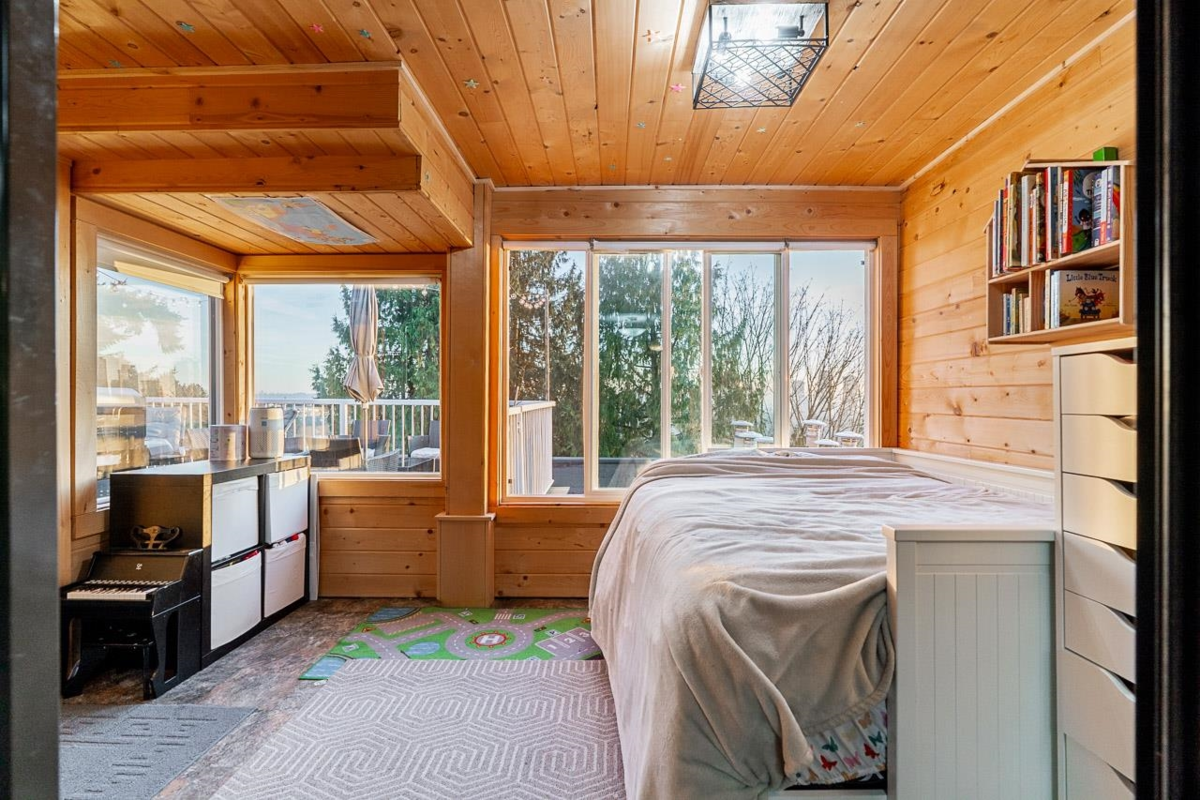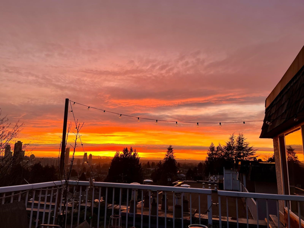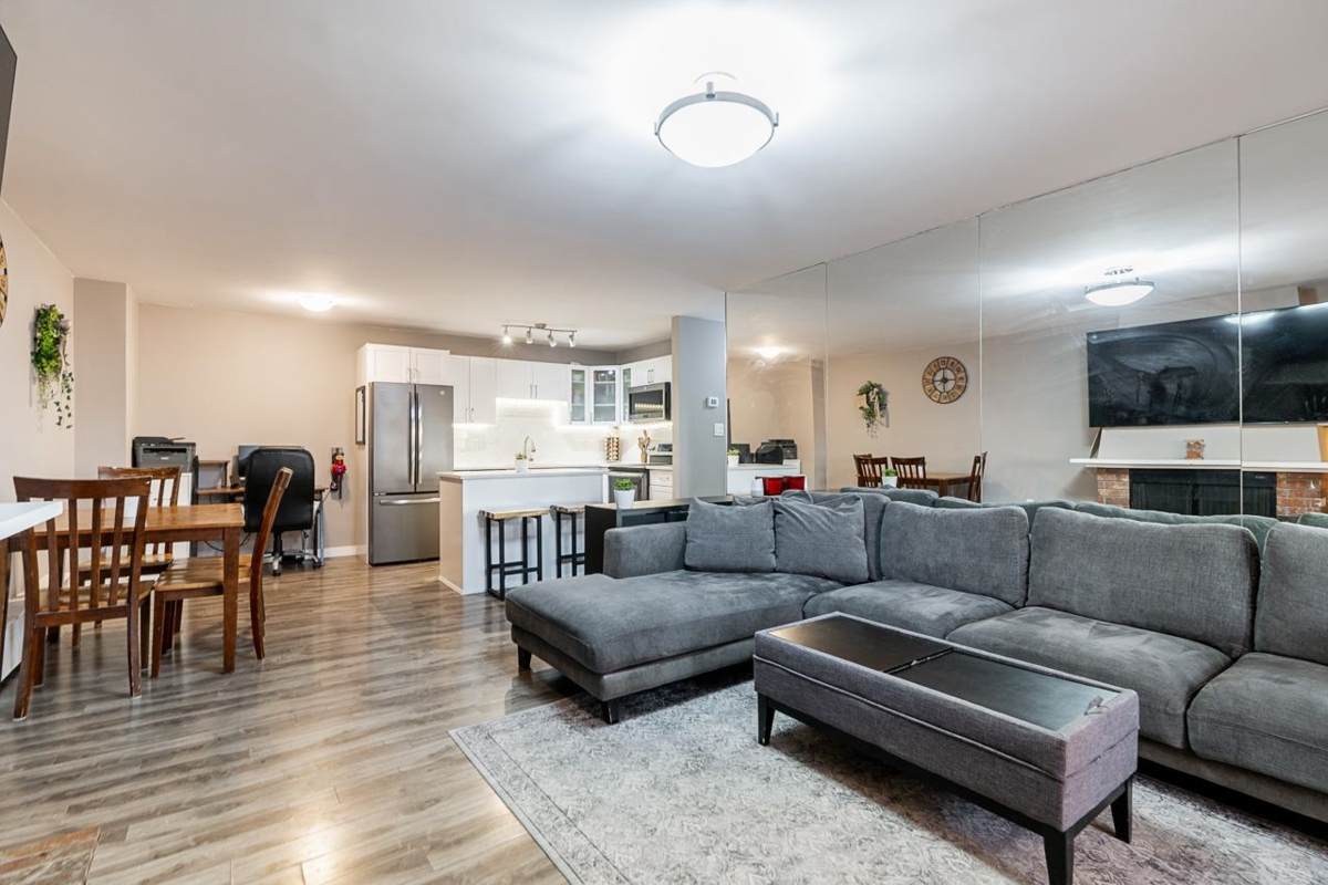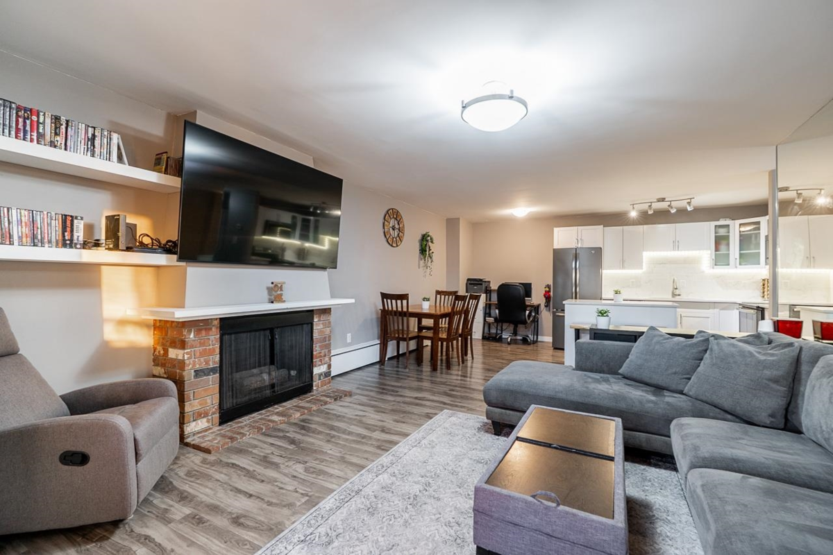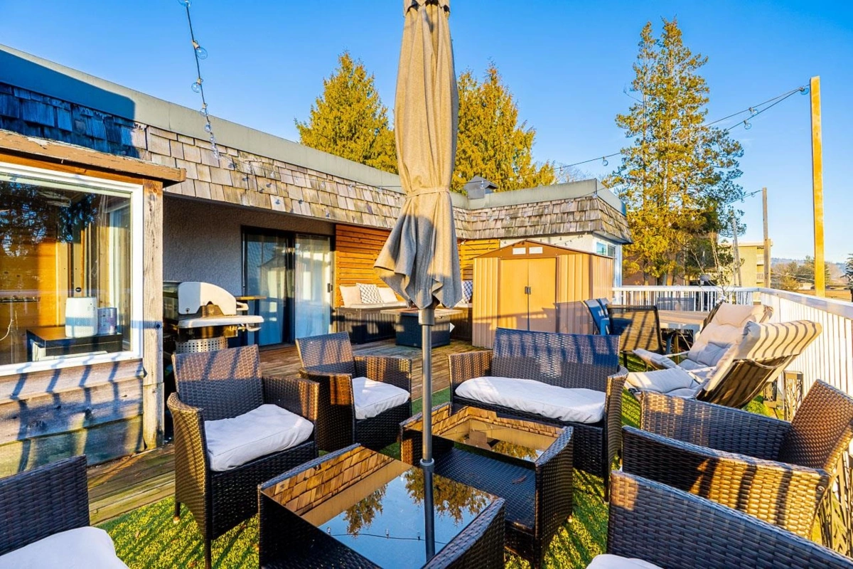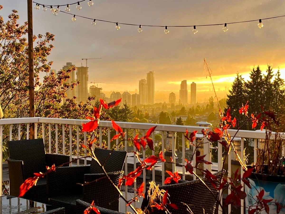 Top-floor 1 bedroom plus solarium featuring a massive 494 Sq Ft south-facing deck with stunning city and sunset views. Fully renovated kitchen with modern cabinetry, quartz countertops, stainless steel appliances, and updated flooring throughout. The bright solarium showcases warm cedar panelling, creating a cozy, cottage-like retreat. Enjoy a cozy gas fireplace! Walk to shops, cafés, and restaurants along Hastings Street. Steps to Kensington Park with pitch & putt, sports fields, and outdoor pool. Minutes to Kensington Plaza, Eileen Dailly Leisure Pool & Fitness Centre, SFU, Confederation Park, and The Amazing Brentwood. Pets allowed (1, any size). Includes 1 parking, storage locker, and hot water baseboard heat & hot water. Open House Saturday Jan 24, 1–3pm & Sunday Jan 25, 12–2pm.