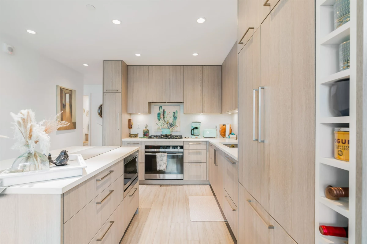 Come see this luxurious & modern 2 bedroom + den/2 bathroom home at the "Green on Queensbury"! Rarely available CORNER + TOP floor unit. This home is a cooking & entertaining dream with a 5-cooktop gas range, integrated appliances, with a large kitchen island. The primary bedroom has a deluxe 5-piece ensuite &. sweeping city and water views to the west from the second bedroom. Enjoy the cooling system on those warm summer days! Walk outside your front door to an abundance of neighbourhood amenities; Spirit Trail, Park & Tilford, or a short distance to Lonsdale's plentiful amenities. Built-in 2019, this pet-friendly building has a rec room, guest suite, children's play area & gym. 1 parking and 1 storage locker included. SEE IT FOR YOURSELF! Open House: Saturday July 15 2-4pm