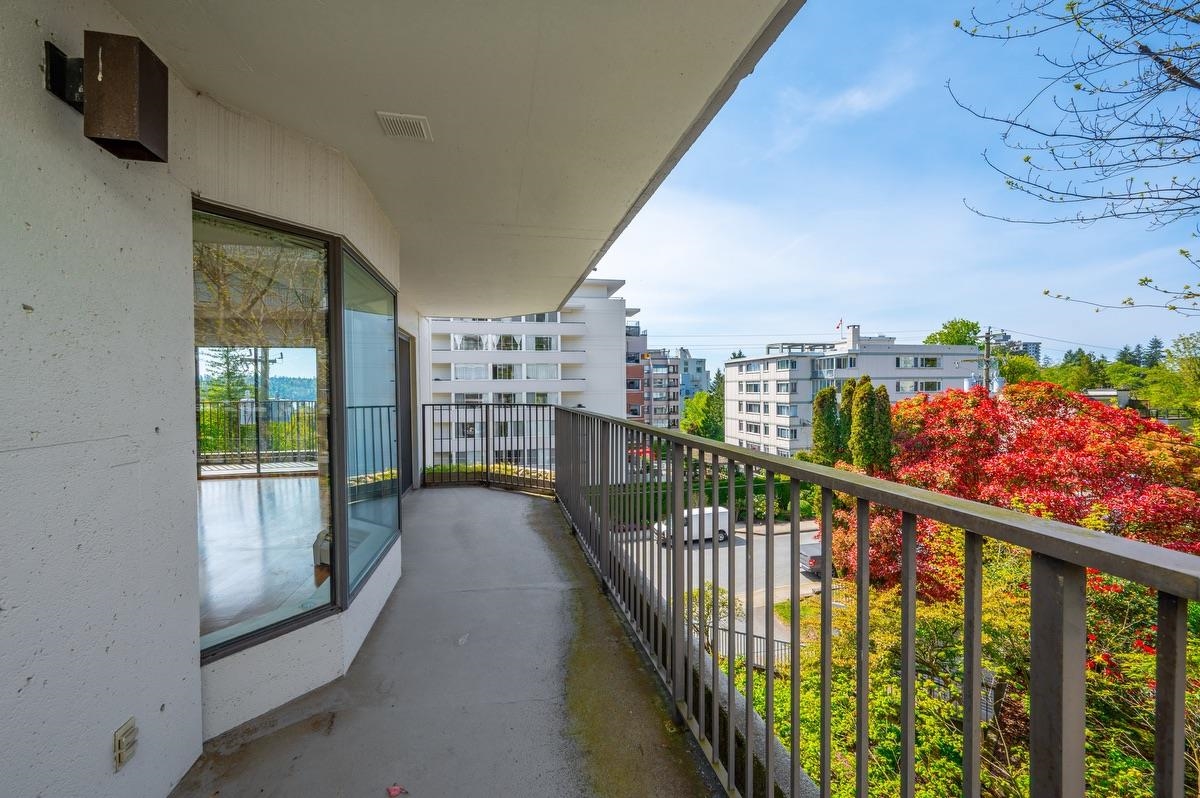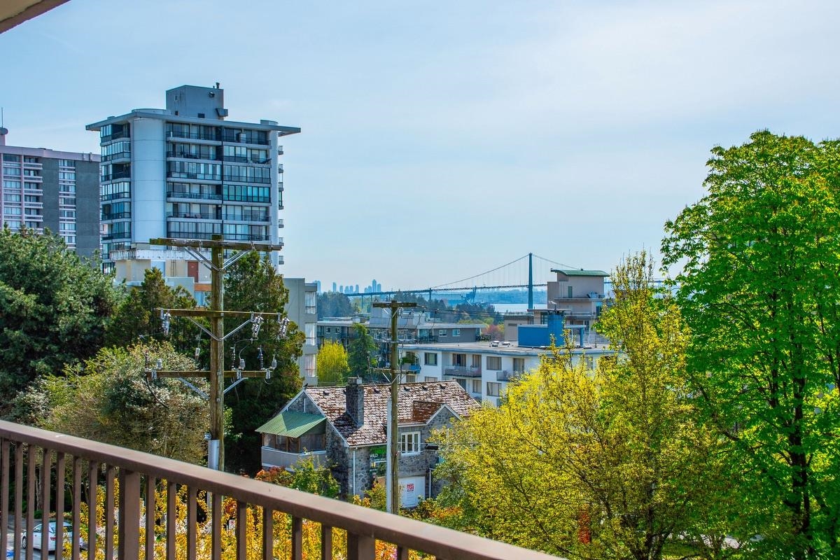 **$135K BELOW ASSESSMENT!** PETS ALLOWED. Nestled in the heart of Ambleside, this south facing 2 bedroom with 1.5 bathrooms, upper corner apartment in the Wesmoor building, offers an abundance of natural light, two generous sized bedrooms and two large covered patios to enjoy the partial bridge and ocean view! Spacious living room w/ hardwood floors and a beautiful comer gas fireplace that adds ambiance and warmth. NEW CARPETS and JUST PAINTED throughout! Excellent CONCRETE low-rise building with only 18 units on 7 floors. Enjoy the beautiful grounds and water feature at front entrance. Walking distance to all the best Ambleside has to offer - top amenities, shops, restaurants,seawall, parks and the beach!Rentals allowed. EXCEPTIONAL VALUE!