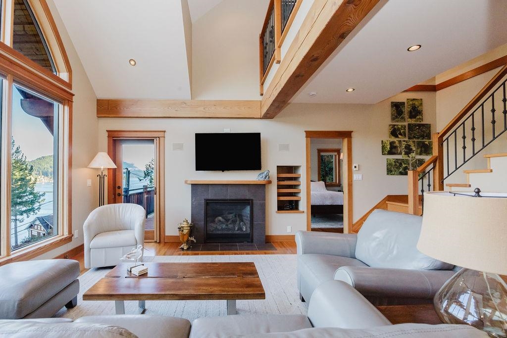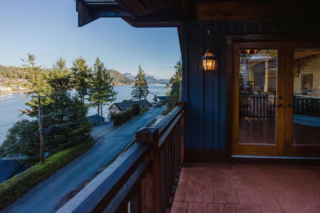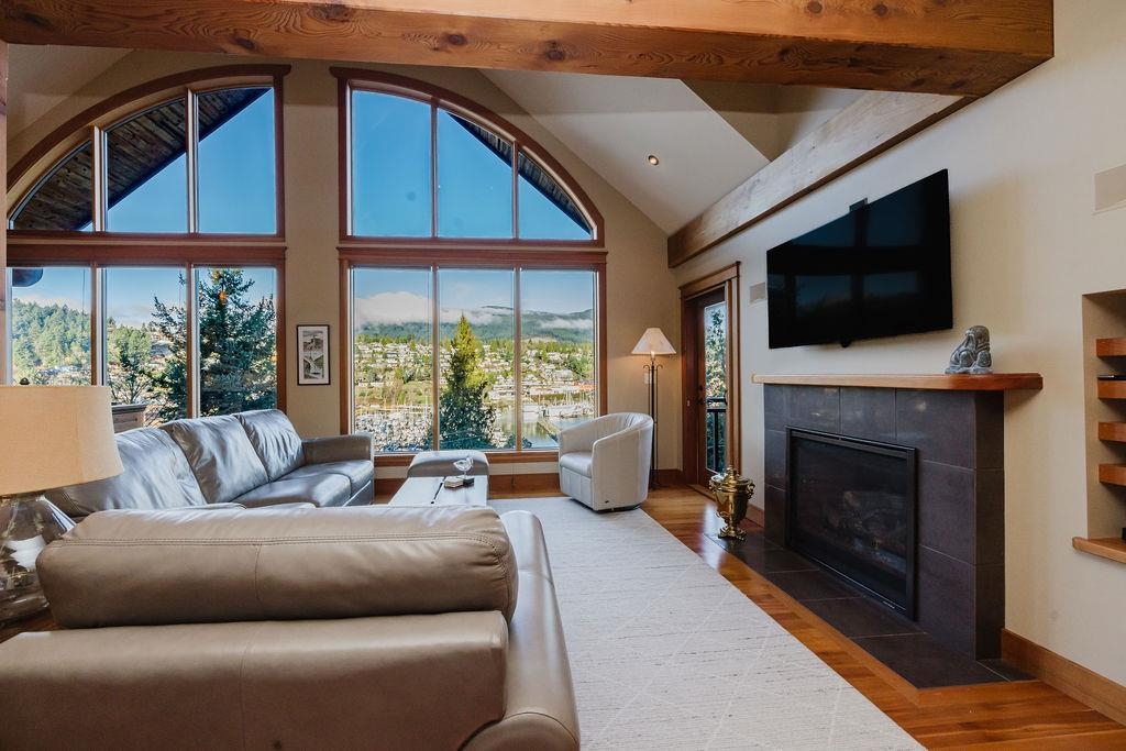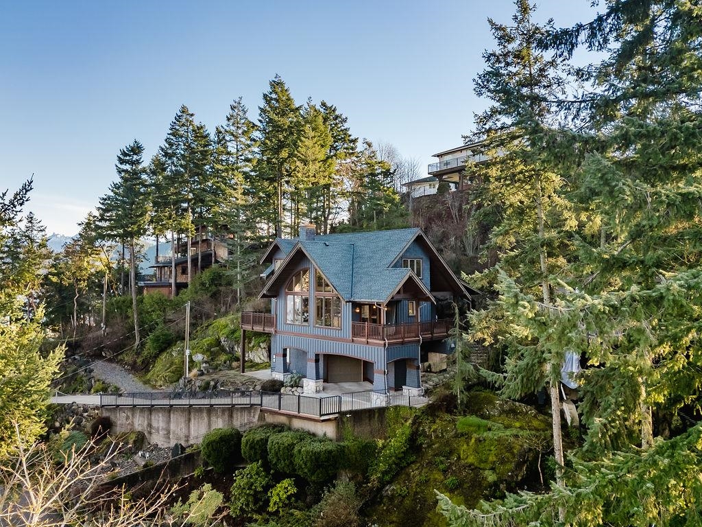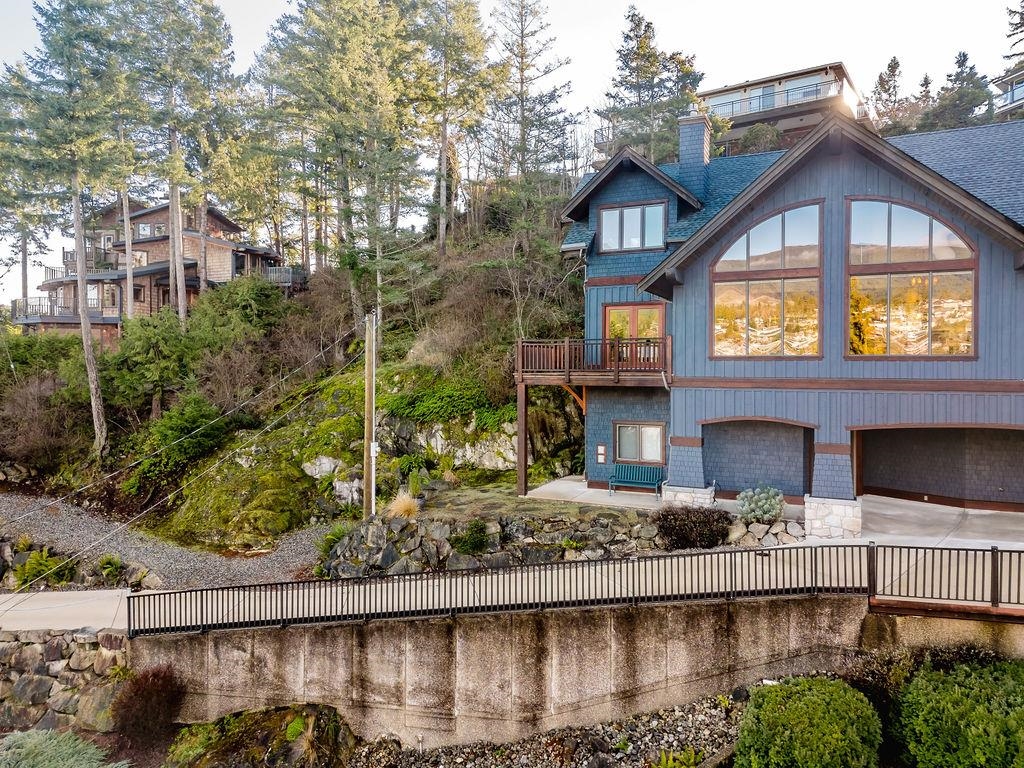 Stunning West Coast post & beam home with unobstructed views of Gibsons Harbour, Lower Gibsons, and Mt. Elphinstone. Open-concept living with floor-to-ceiling picture windows capturing views from nearly every room. Gourmet kitchen with quartzite counters and premium appliances. Primary suite features private deck, walk-in closet, and spa-like ensuite with heated floors, Japanese soaker tub, and rainfall shower. Upper level offers two bedrooms, full bathroom, and view-filled landing. Covered concrete patio with gas hookup plus west-facing covered view deck. The lower floor features a single car garage with additional storage space plus utility room w/High-efficiency heat pump and forced-air furnace. The Sale includes the neighbouring 7,340 sq ft view lot for future building or co-purchase.