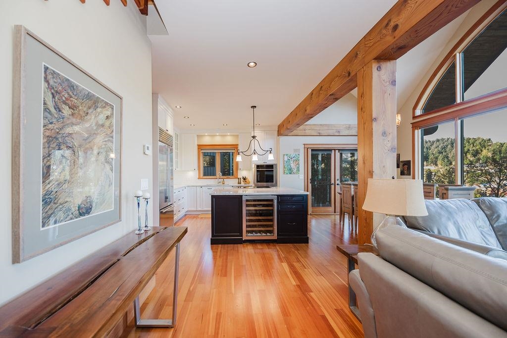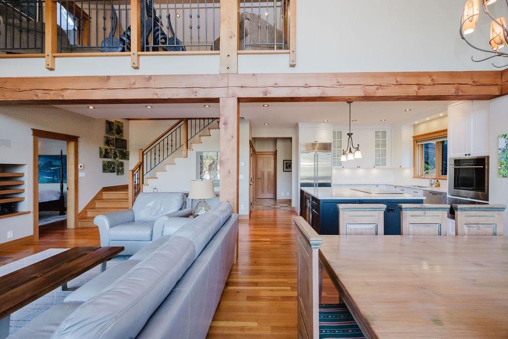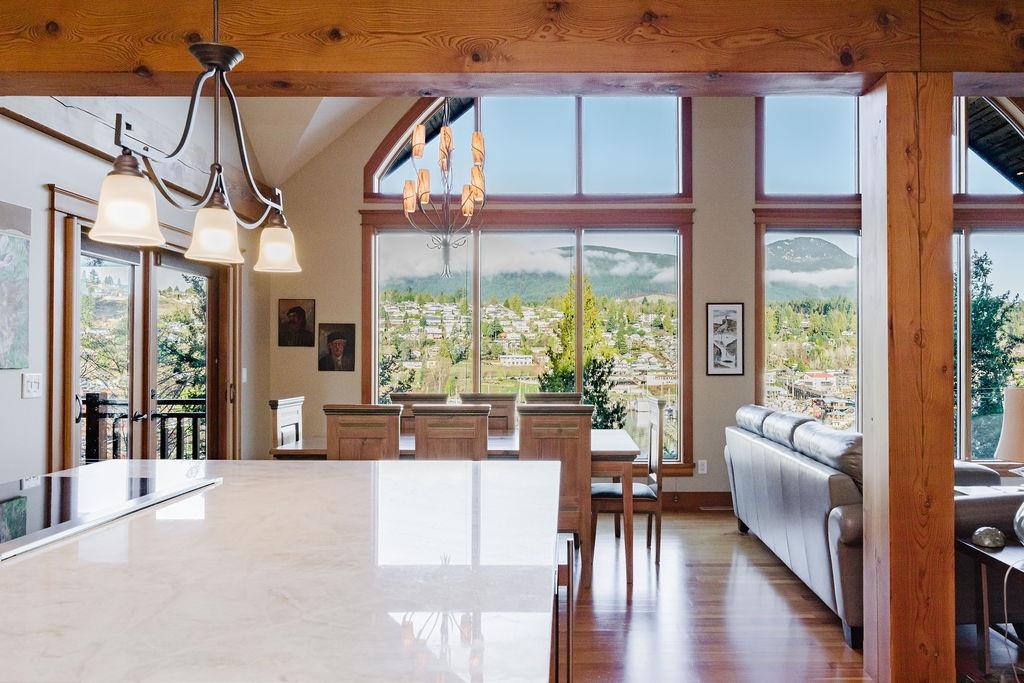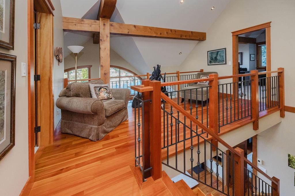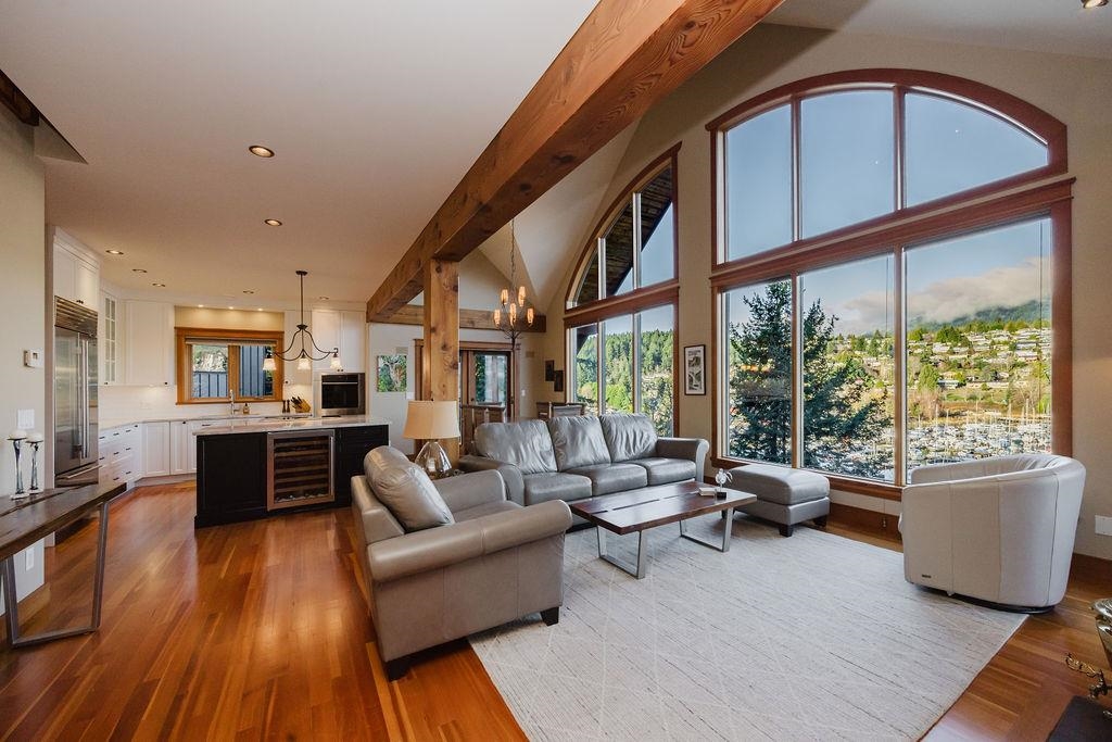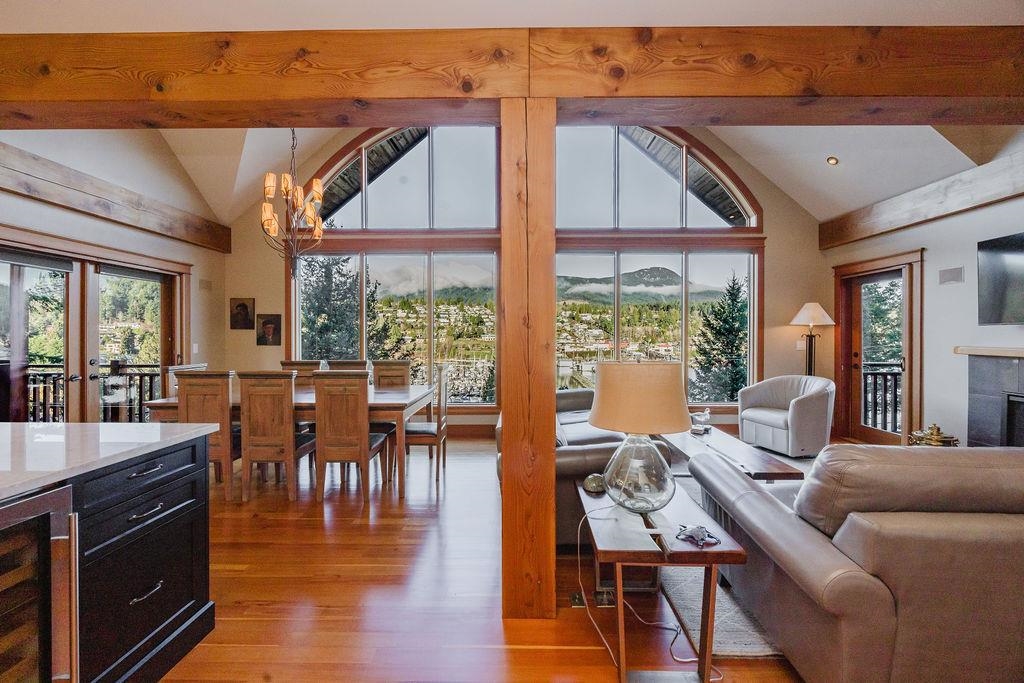 Stunning West Coast post & beam home with unobstructed views of Gibsons Harbour, Lower Gibsons, and Mt. Elphinstone. Open-concept living with floor-to-ceiling picture windows capturing views from nearly every room. Gourmet kitchen with quartzite counters and premium appliances. Primary suite features private deck, walk-in closet, and spa-like ensuite with heated floors, Japanese soaker tub, and rainfall shower. Upper level offers two bedrooms, full bathroom, and view-filled landing. Covered concrete patio with gas hookup plus west-facing covered view deck. The lower floor features a single car garage with additional storage space plus utility room w/High-efficiency heat pump and forced-air furnace. The Sale includes the neighbouring 7,340 sq ft view lot for future building or co-purchase.